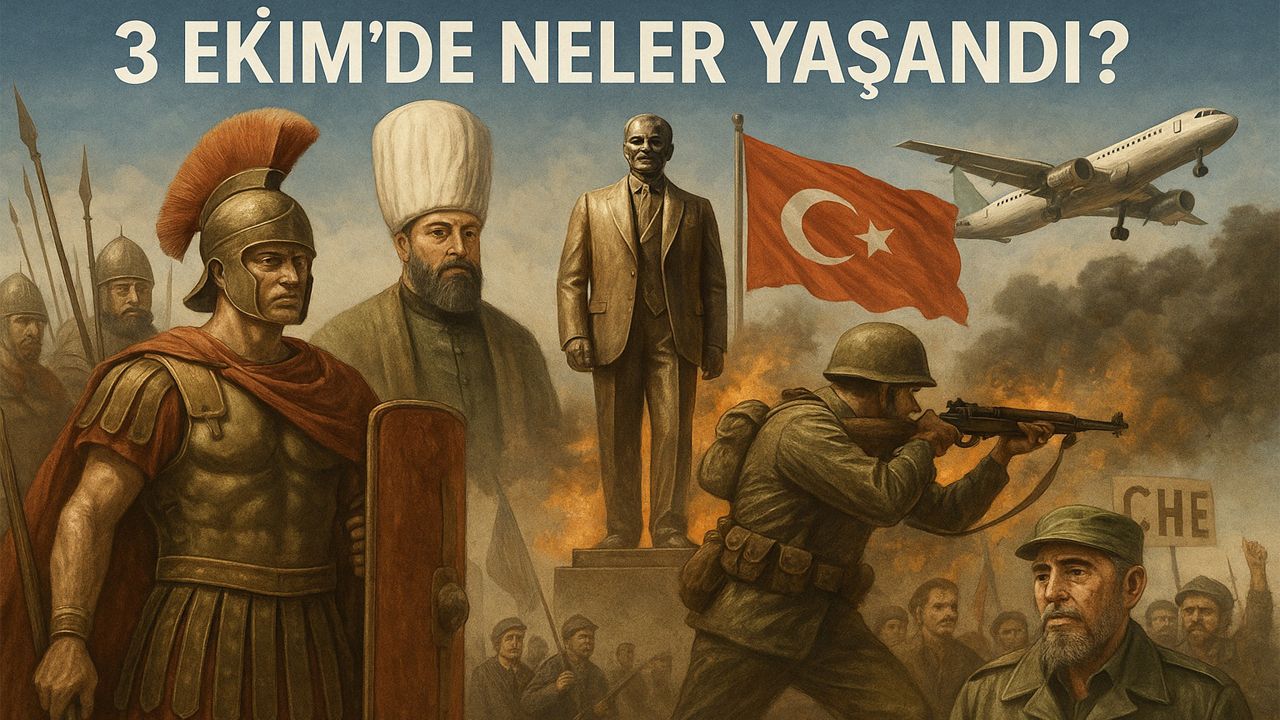 3 Ekim, tarihte önemli anların yaşandığı bir gün olarak karşımıza çıkıyor. Bugün hem Dünya hem de Türkiye tarihinde önemli olaylar yaşandı. Peki, 3 Ekim’de, hangi tarihi gelişmeler gerçekleşti? İşte, 3 Ekim’de tarihinde meydana gelen olayları kronolojik sırayla sizlerle haberimizde paylaşıyoruz…