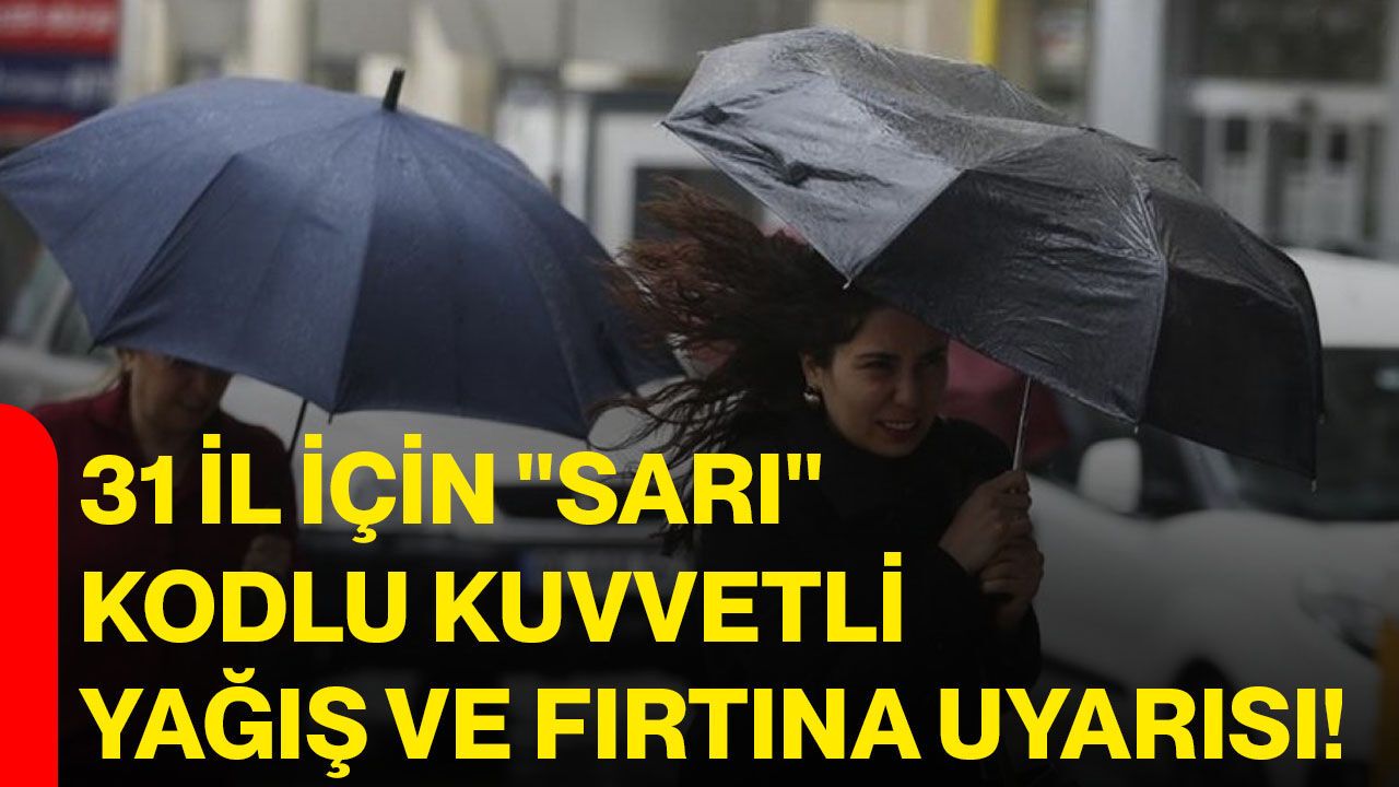 Meteoroloji Genel Müdürlüğü tarafından yapılan son değerlendirmelere göre, Türkiye genelinde çok bulutlu ve aralıklı yağışlı hava etkili olacak. Ülke genelinde beklenen kuvvetli yağış ve fırtına nedeniyle 31 il için “sarı” kodlu uyarı verildi.