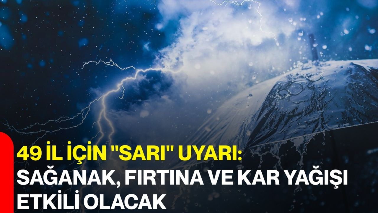 Meteoroloji Genel Müdürlüğü tarafından yapılan son değerlendirmelere göre, Marmara, Ege, İç Anadolu, Akdeniz ve Güneydoğu Anadolu bölgelerinde sağanak yağış; Doğu Anadolu Bölgesi’nde ise kar yağışı bekleniyor. 49 il için sarı kodlu uyarı yapılırken, vatandaşların tedbirli olması istendi.
