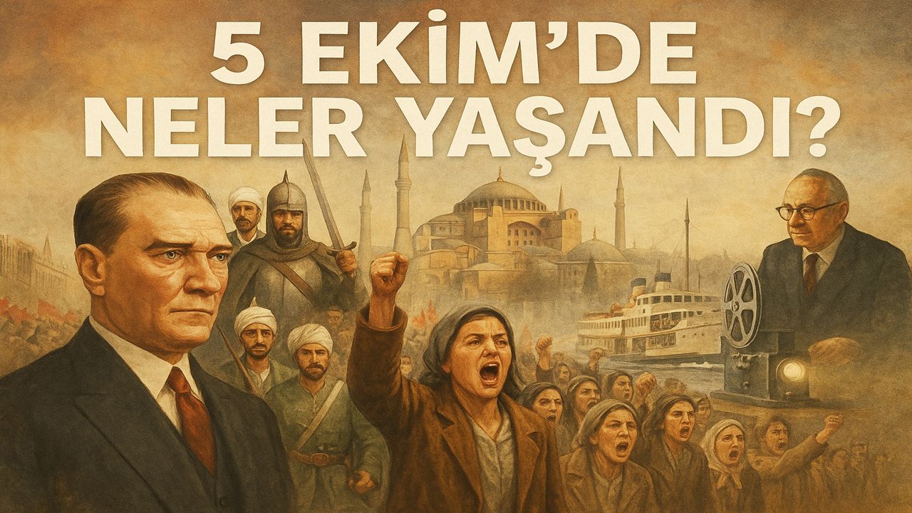5 Ekim, tarihte önemli anların yaşandığı bir gün olarak karşımıza çıkıyor. Bugün hem Dünya hem de Türkiye tarihinde önemli olaylar yaşandı. Peki, 5 Ekim’de, hangi tarihi gelişmeler gerçekleşti? İşte, 5 Ekim’de tarihinde meydana gelen olayları kronolojik sırayla sizlerle haberimizde paylaşıyoruz…