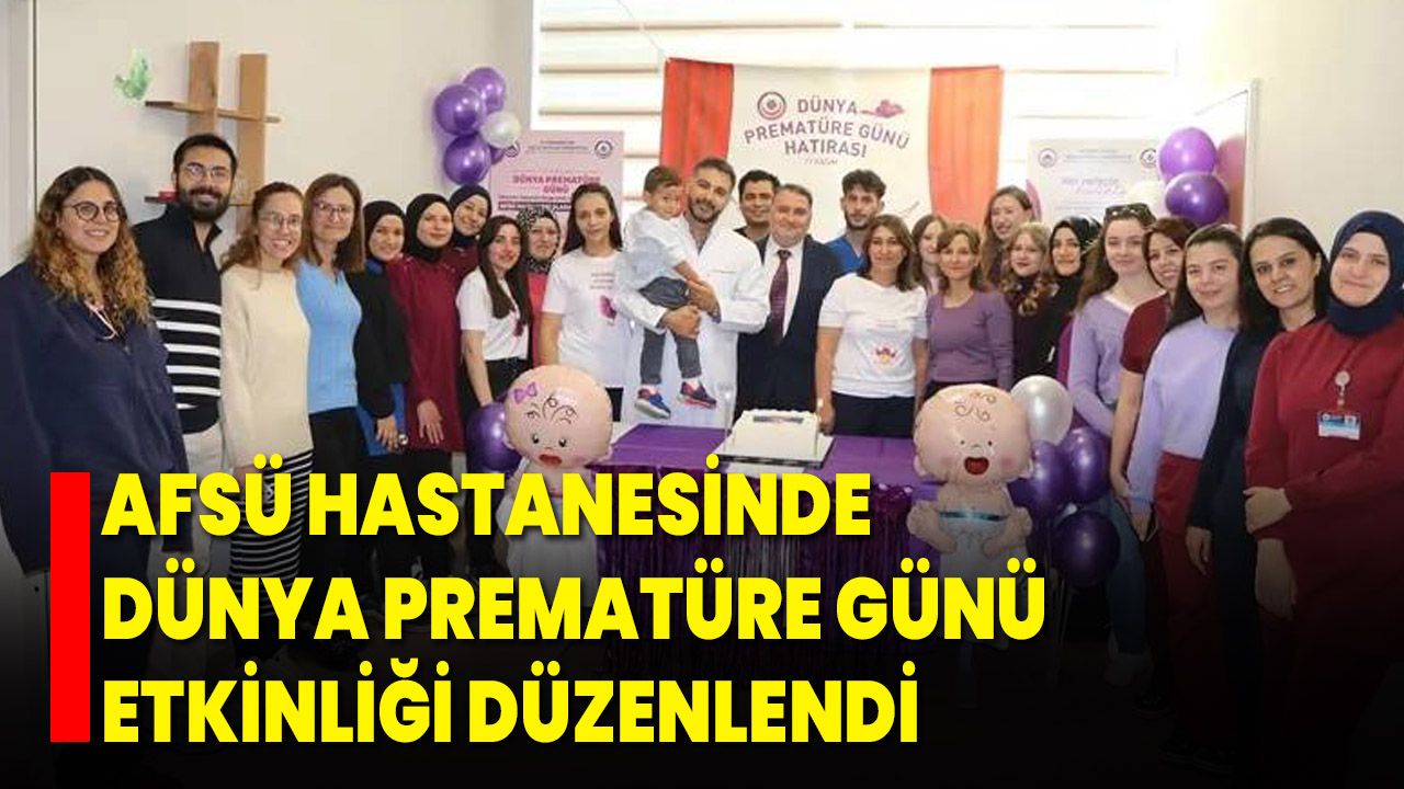 Afyonkarahisar Sağlık Bilimleri Üniversitesi (AFSÜ) Hastanesi Yeni Doğan Ünitesinde, 17 Kasım Dünya Prematüre Günü dolayısıyla anlamlı bir etkinlik düzenlendi. Programa prematüre bebekler ve aileleri ile Başhekim Doç. Dr. Aydın Balcı, Yeni Doğan Bilim Dalı Başkanı Prof. Dr. Ahmet Afşin Kundak ve hastane personeli katıldı. Etkinlik, hem ailelerin yaşadığı sürece dikkat çekmek hem de sağlık çalışanlarının özverisini görünür kılmak amacıyla gerçekleştirildi.