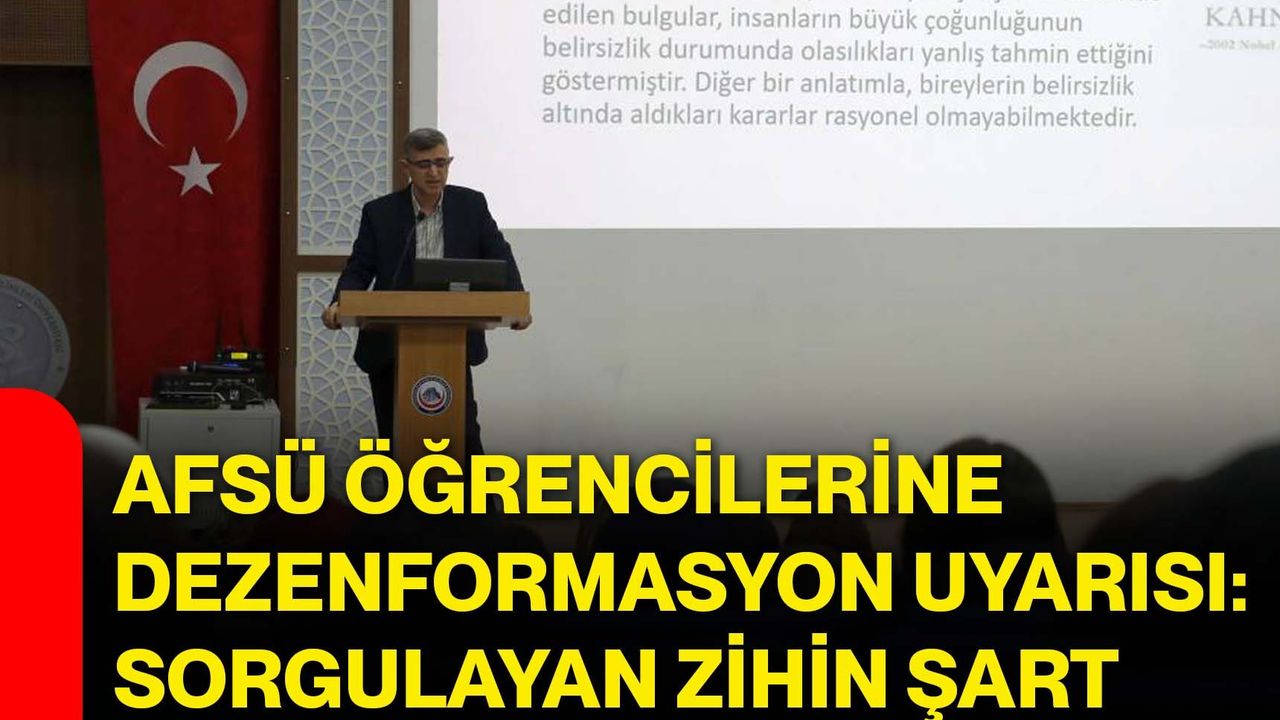 Afyonkarahisar Sağlık Bilimleri Üniversitesi (AFSÜ) personel ve öğrencilerine yönelik etkinlikte, kasıtlı olarak üretilen ve yayılan yanlış ya da çarpıtılmış bilgileri anlamak için eleştirel düşünmenin önemi ele alındı. Afyon Kocatepe Üniversitesi Rektör Danışmanı Prof. Dr. İsa Sağbaş’ın konuşmacısı olduğu “Eleştirel-Analitik Düşünme ve Dezenformasyon” başlıklı etkinlik, AFSÜ Dezenformasyonla Mücadele Topluluğu (DMT) ile AFSÜ Kritik ve Analitik Düşünme Topluluğu (KAD) iş birliğinde düzenlendi.