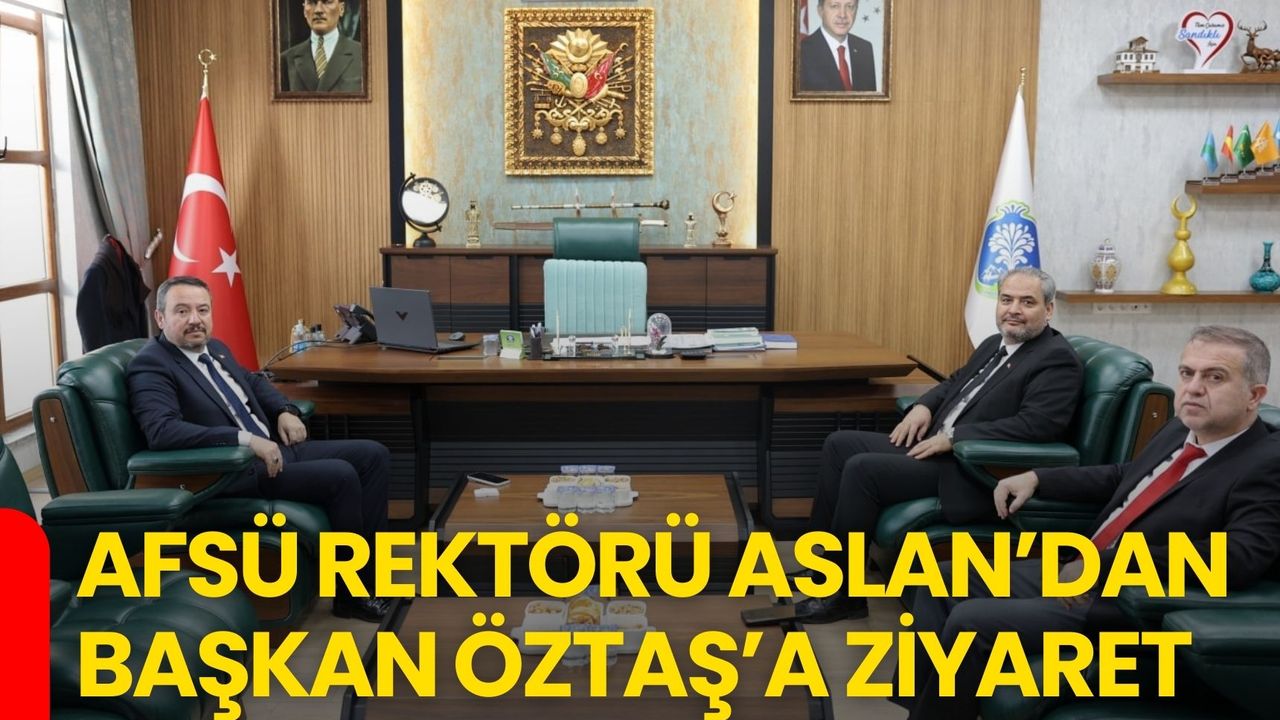 Afyonkarahisar Sağlık Bilimleri Üniversitesi Rektörü Prof. Dr. Adem Aslan ile Üniversite Genel Sekreteri Murat Zengin, Sandıklı Belediye Başkanı Adnan Öztaş’a iade-i ziyarette bulundu. Belediye makamında gerçekleşen görüşmede, üniversite ile belediye arasında kurulabilecek iş birliği alanları ele alındı.