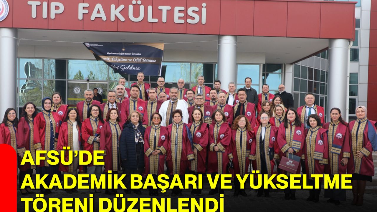 Afyonkarahisar Sağlık Bilimleri Üniversitesinde (AFSÜ) gerçekleştirilen “Akademik Yükseltme ve Ödül Töreni”nde, 2024 yılı boyunca yürüttükleri bilimsel çalışmalarla başarı gösteren akademisyenlere ödül verilirken, hâlen görev yapan 58 profesöre de belge takdim edildi. Törende ödül ve belgeler, AFSÜ Rektörü Prof. Dr. Adem Aslan tarafından sunuldu.