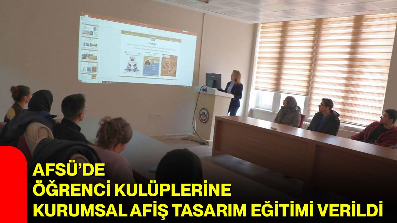 Afyonkarahisar Sağlık Bilimleri Üniversitesi (AFSÜ) öğrenci kulüp ve topluluk temsilcileri, kurumsal kimlik standartlarına uygun afiş tasarımı konusunda eğitim aldı. Rektörlük binasında gerçekleştirilen programda, kulüp ve toplulukların hazırladığı görsel materyallerin daha etkili ve bütüncül bir iletişim diliyle oluşturulması hedeflendi.