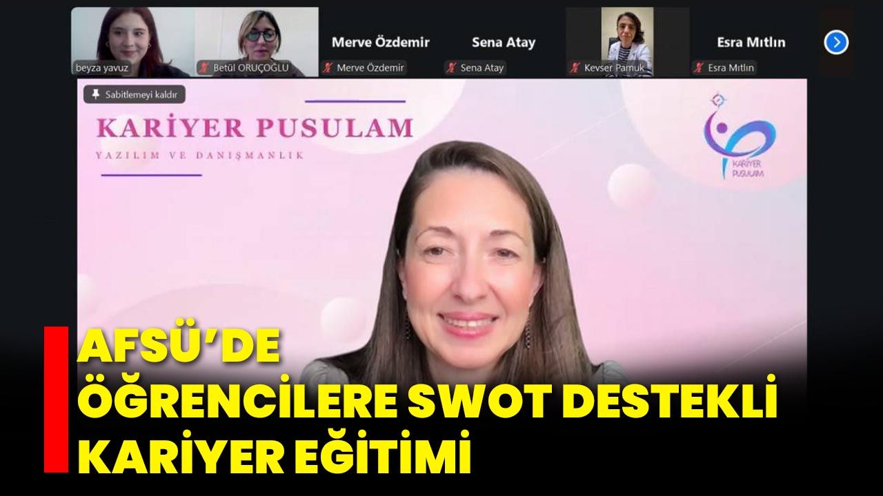 Afyonkarahisar Sağlık Bilimleri Üniversitesi (AFSÜ), öğrencilerinin kariyer yolculuklarına yön verecek önemli bir etkinliğe ev sahipliği yaptı. AFSÜ Kariyer ve Girişimcilik Uygulama ve Araştırma Merkezi (KAGİM) tarafından düzenlenen “Kariyer Yolunda SWOT ile Kendini Tanı” başlıklı eğitim, öğrencilerin kendilerini daha yakından tanımasına katkı sağlamak amacıyla çevrim içi olarak gerçekleştirildi. Programda, bireylerin kariyer gelişimini etkileyen güçlü ve zayıf yönler, fırsatlar ve tehditler bütüncül bir bakış açısıyla ele alındı.