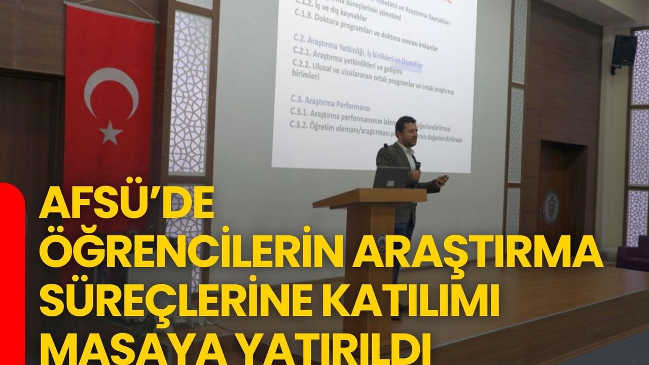 Afyonkarahisar Sağlık Bilimleri Üniversitesi (AFSÜ) Kalite Koordinatörlüğü Araştırma ve Geliştirme Komisyonu tarafından, yükseköğretimde kalite güvencesi çalışmaları kapsamında “Öğrencilerin Araştırma ve Geliştirme Süreçlerine Katılımı” başlıklı bir toplantı gerçekleştirildi. Zafer Sağlık Külliyesi Mavi Salon’da düzenlenen etkinlikte, lisansüstü, lisans ve ön lisans düzeyinde öğrenim gören öğrencilerin araştırma faaliyetlerine katılımı farklı yönleriyle değerlendirildi.