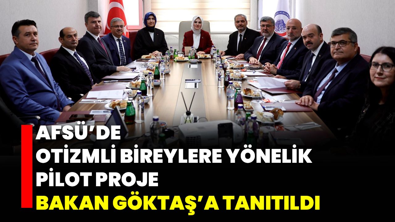 Afyonkarahisar Sağlık Bilimleri Üniversitesi (AFSÜ), otizmli bireyler ve ailelerine yönelik bütüncül ve sürekli destek mekanizmalarının güçlendirilmesini hedefleyen pilot projeyi hayata geçiriyor. Aile ve Sosyal Hizmetler Bakanı Mahinur Özdemir Göktaş, Afyonkarahisar Valisi Doç. Dr. Kübra Güran Yiğitbaşı ve il protokolü, AFSÜ Rektörü Prof. Dr. Adem Aslan’ı makamında ziyaret ederek proje hakkında bilgi aldı.