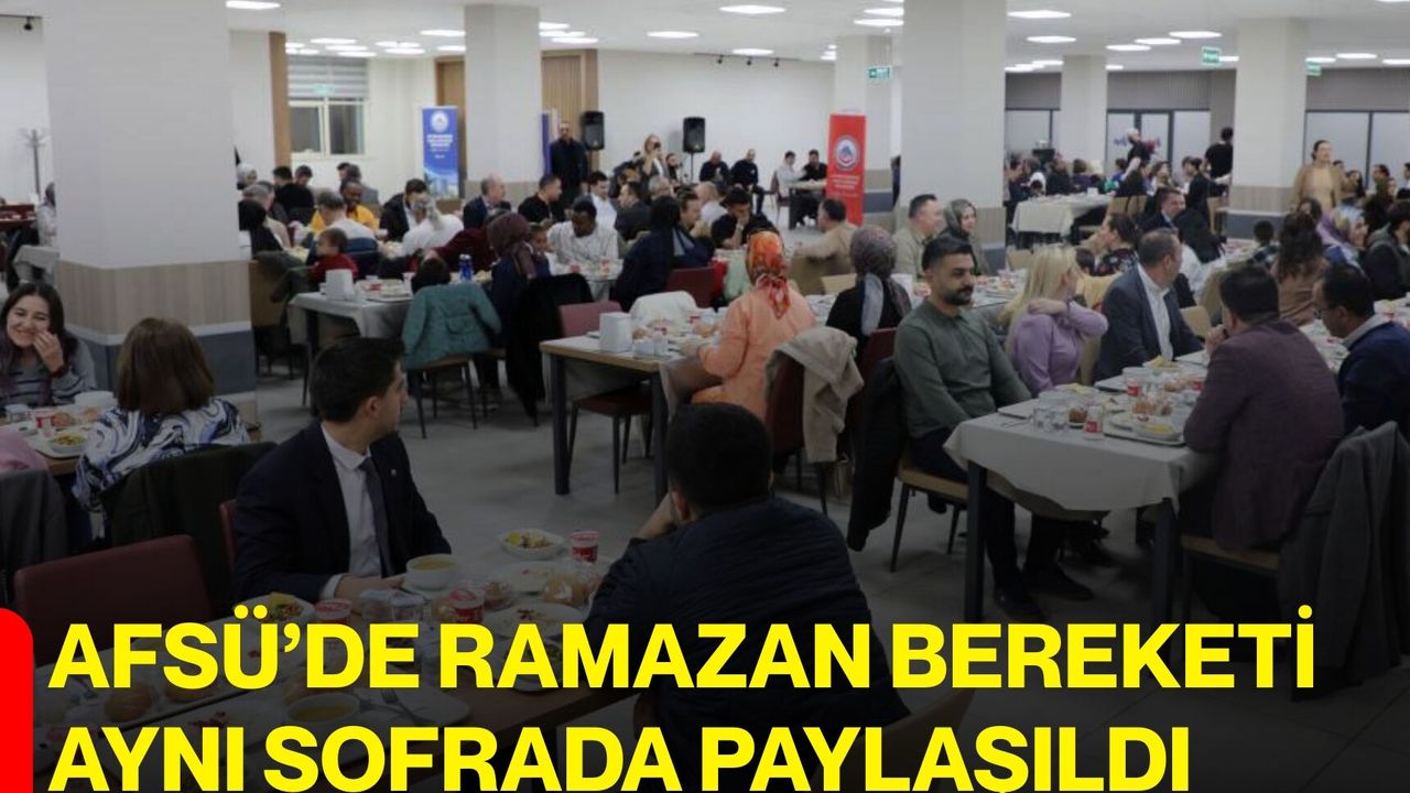 Afyonkarahisar Sağlık Bilimleri Üniversitesi (AFSÜ) Rektörü Prof. Dr. Adem Aslan, üniversitenin merkezi yemekhanesinde düzenlenen iftar programında akademik ve idari personelle buluştu. Ramazan ayının birlik, beraberlik ve dayanışma ruhunun paylaşıldığı programda, üniversite yönetimi ile personel arasında samimi bir atmosfer oluştu. Programa Rektör Yardımcısı Prof. Dr. İbrahim Keleş, fakülte dekanları, birim yöneticileri, Genel Sekreter Murat Zengin, daire başkanları, AFSÜ Hastanesi Başhekimi Doç. Dr. Aydın Balcı, AFSÜ Diş Hastanesi Başhekimi Doç. Dr. Ömer Ekici ile çok sayıda akademik ve idari personel katılım sağladı.