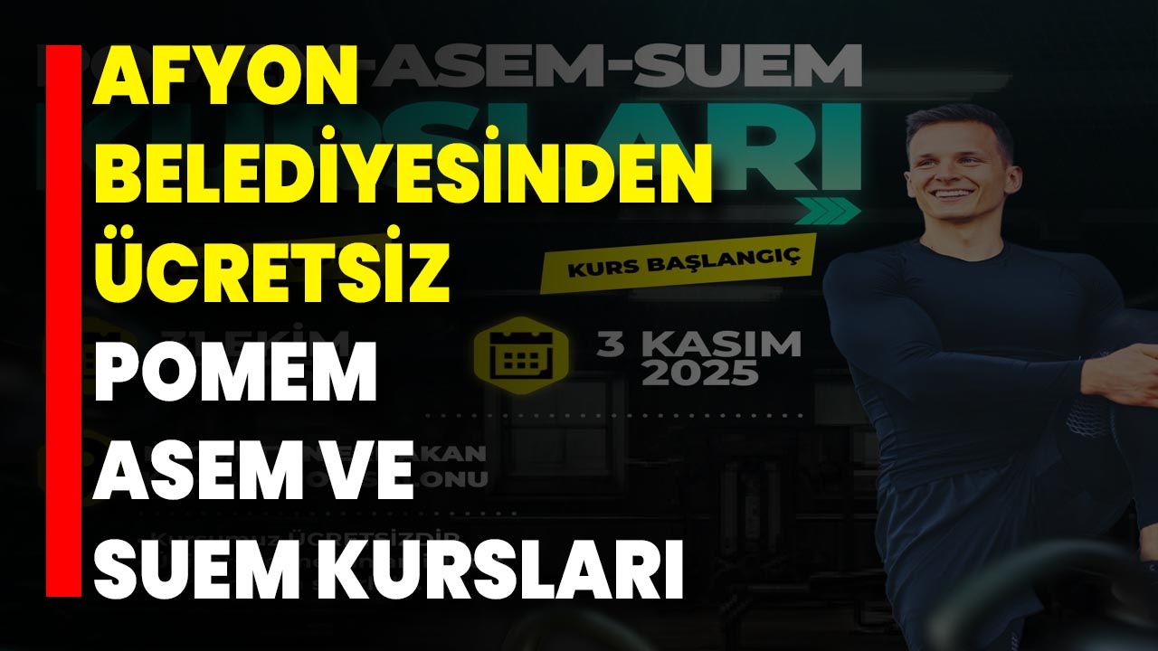 Afyonkarahisar Belediyesi, gençlerin kariyer hedeflerine katkı sunmak amacıyla POMEM, ASEM ve SUEM hazırlık kurslarını hayata geçiriyor. Necmettin Erbakan Kapalı Spor Salonu’nda 3 Kasım 2025 tarihinde başlayacak olan kurslara son başvuru tarihi 31 Ekim 2025 olarak açıklandı. Üniversite mezunlarına yönelik olarak planlanan kurslar ücretsiz şekilde gerçekleştirilecek.