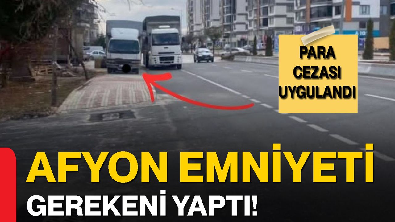 Emniyet Müdürlüğü ekiplerince yürütülen rutin trafik denetimleri kapsamında, Muhsin Yazıcıoğlu Bulvarı–Eski Şuhut Kavşağı bölgesinde yapılan kontrollerde bir kamyonetin yaya kaldırımı üzerinde usulsüz şekilde park edildiği tespit edildi. Yaya güvenliğini tehlikeye düşürdüğü belirlenen araçla ilgili işlem başlatıldı.