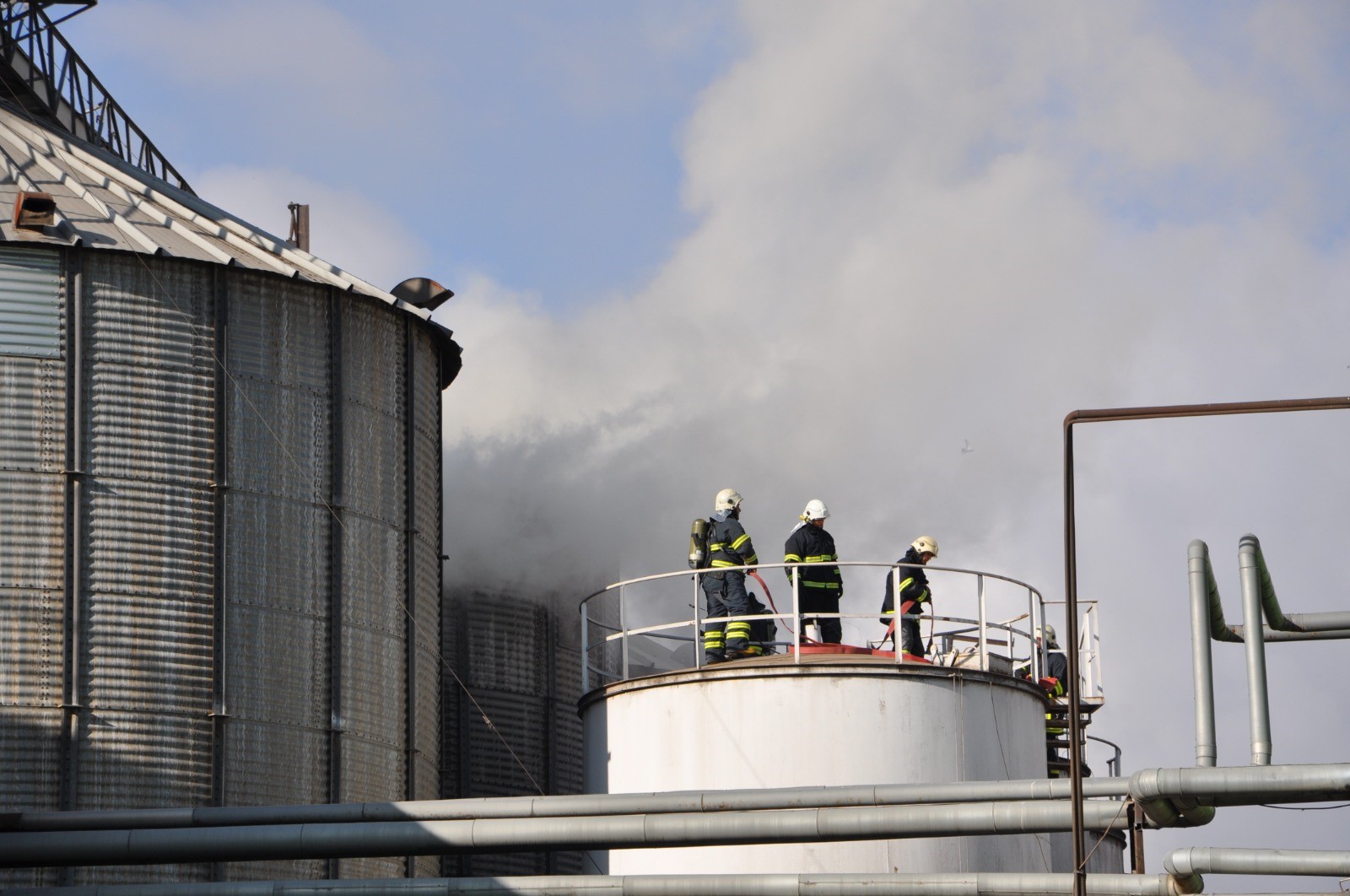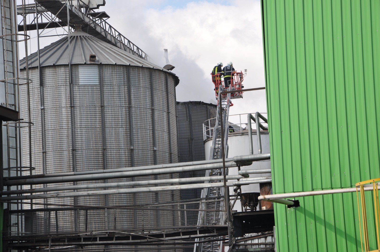 Silo çevresinde soğutma çalışmaları sürerken, üretim hattının diğer bölümlerine alevlerin sıçramasının önüne geçildi.