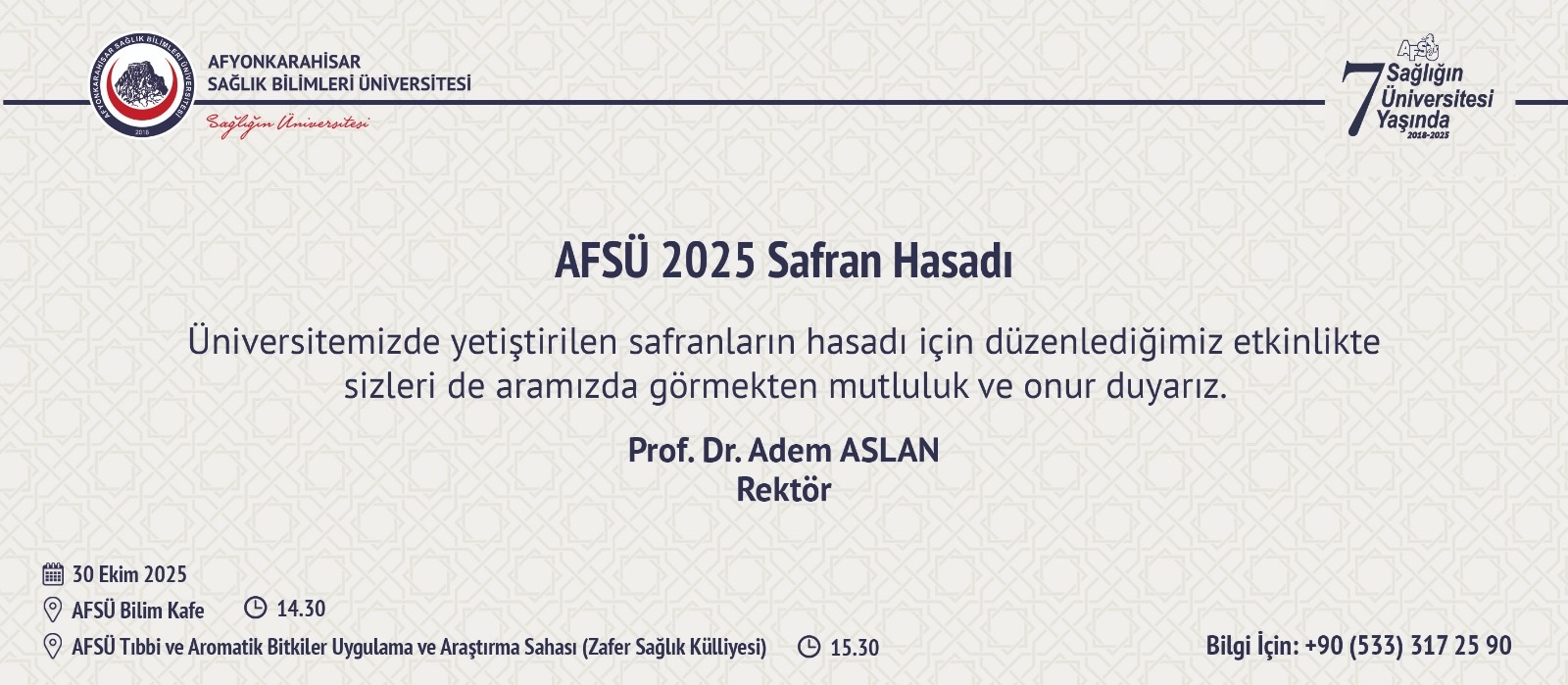 AFSÜ Rektörü Prof. Dr. Adem Aslan, hasat etkinliğine tüm vatandaşları davet ederek, “Üniversitemizde yetiştirdiğimiz safranların hasadı için düzenlediğimiz etkinlikte sizleri de aramızda görmekten büyük mutluluk duyarız.” ifadelerini kullandı.