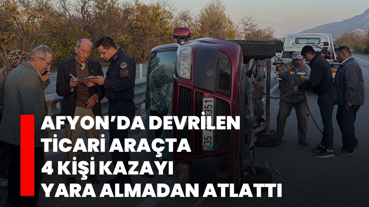 Kaza, Çay ilçesi yakınlarında meydana geldi. Edinilen bilgilere göre, 35 AS 0351 plakalı hafif ticari araç sürücüsünün henüz belirlenemeyen bir sebepten ötürü direksiyon hakimiyetini kaybetmesi sonucu kontrolden çıktı. Savrulan araç ardından bariyerlere çarpıp yol ortasına devrildi. İçerisinde 4 kişinin bulunduğu araçta şans eseri ölen ya da yaralanan olmadı.