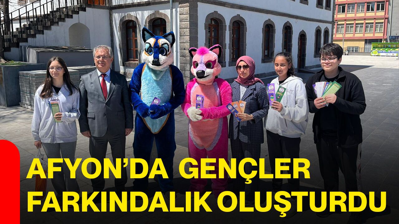 Afyon Lisesi Yeşilay Kulübü öğrencileri tarafından yürütülen “Ekranı Bırak, Hayata Bak” projesi kapsamında Zafer Meydanı’nda dikkat çeken bir etkinlik düzenlendi. Renkli görüntülere sahne olan etkinlikte öğrenciler, çeşitli kostümler giyerek vatandaşlara el broşürleri dağıttı ve dijital bağımlılığa karşı farkındalık oluşturdu. Gençlerin yoğun ilgi gösterdiği etkinlikte, teknolojinin bilinçsiz kullanımının zararlarına dikkat çekilirken, ekran dışı sosyal aktivitelerin önemine vurgu yapıldı.