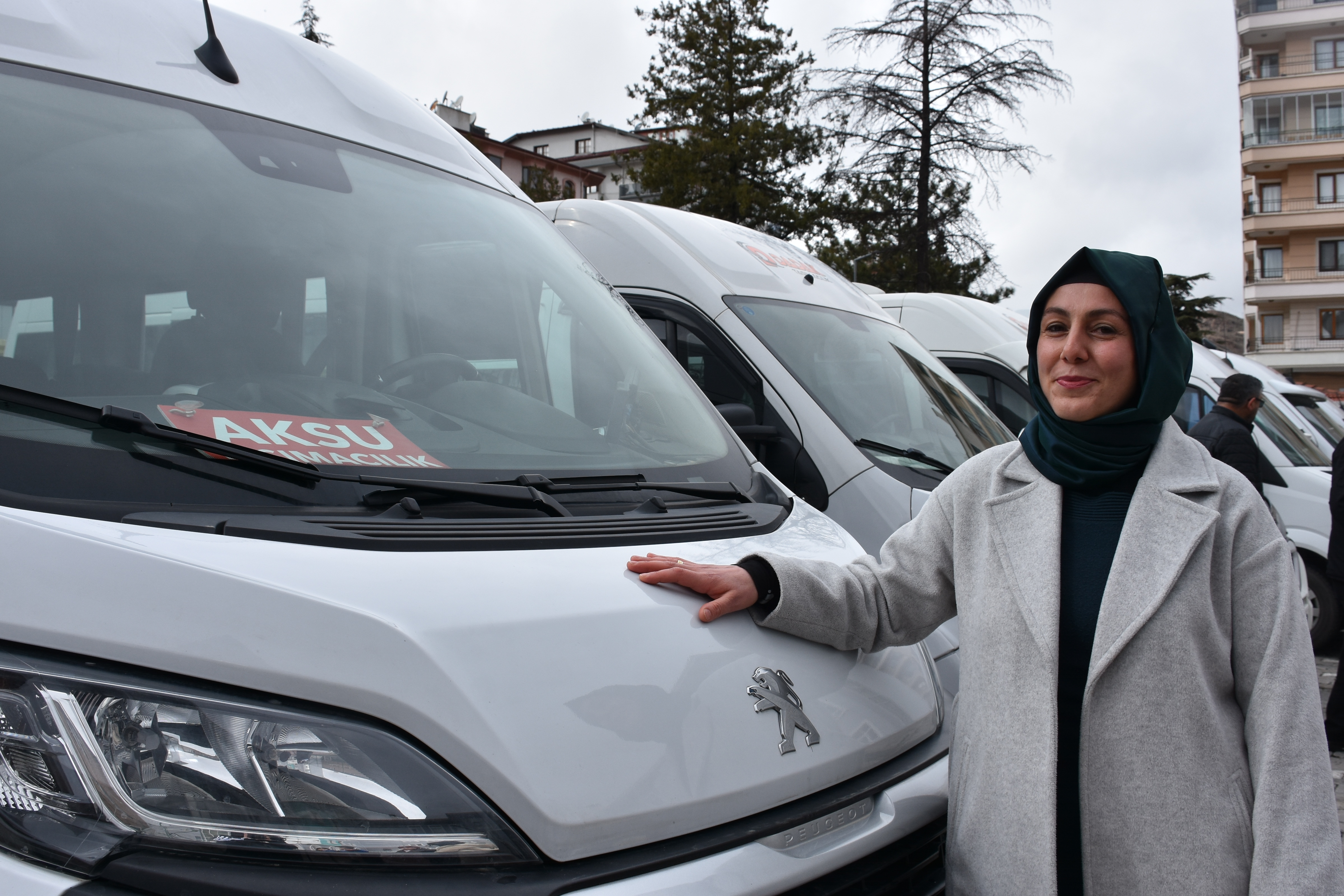 Sahipata Mahallesi'nde yaşayan Aksu, 2017'de eşi Kadir Aksu ile aldıkları minibüsle kentte öğrenci servis hizmeti sunmaya başladı. Eşinin başka bir iş nedeniyle Kanada'ya gitmesiyle üç yıl önce minibüsün direksiyonuna geçen Aksu, öğrencileri güvenle taşıyor.