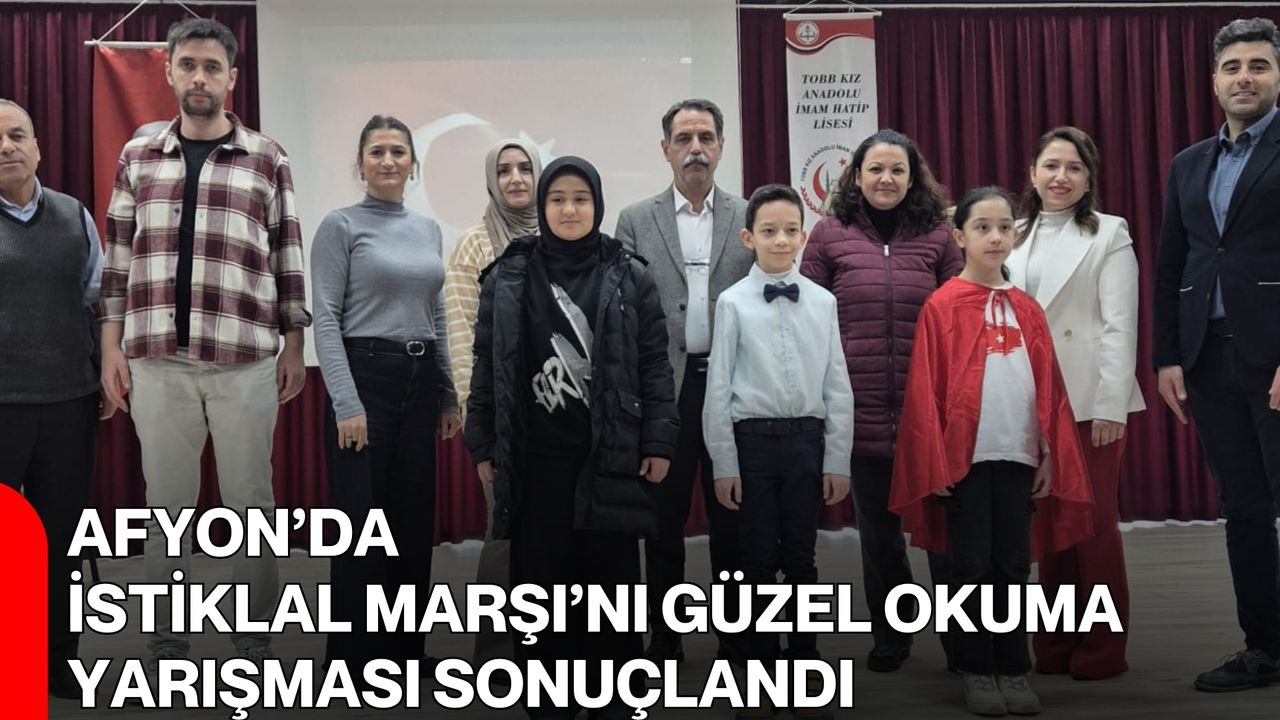 Milli Eğitim Bakanlığı Temel Eğitim Genel Müdürlüğü koordinesinde, Afyonkarahisar İl Milli Eğitim Müdürlüğü tarafından düzenlenen İstiklal Marşı’nın Kabulü ve Mehmet Akif Ersoy’u Anma Günü etkinlikleri kapsamında gerçekleştirilen “Korkma! Gençliğin Ruhu Burada!” temalı İstiklal Marşı’nı Güzel Okuma Yarışması sonuçları belirlendi.