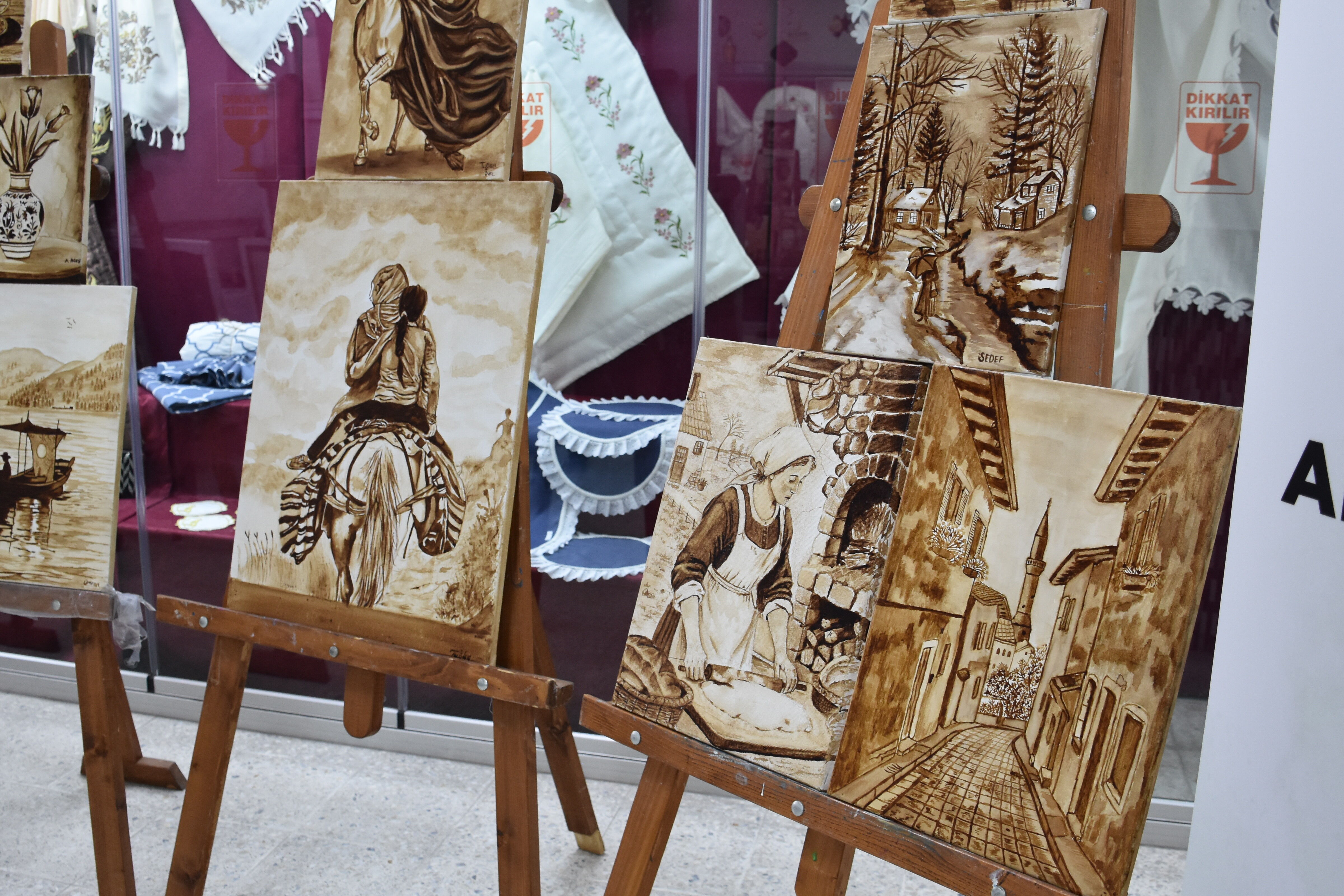 Afyonkarahisar Halk Eğitim Merkezi Müdürlüğü bünyesinde açılan resim kursuna katılan kursiyerler, alışılmışın dışında bir teknikle sanat eserleri ortaya koyuyor. Boya yerine kahve kullanarak hazırlanan resimler, hem farklı bir sanat anlayışı sunuyor hem de kursiyerlerin el emeği çalışmalarını sanatseverlerle buluşturuyor.