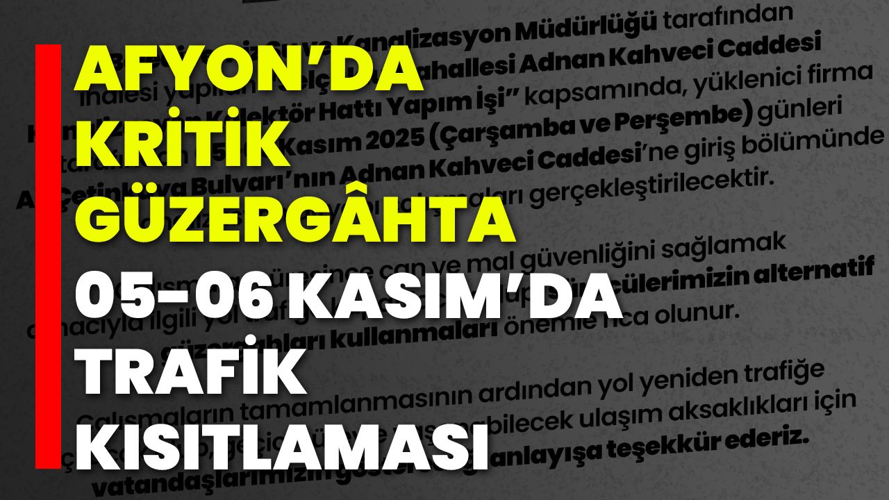 Afyonkarahisar Belediyesi Su ve Kanalizasyon Müdürlüğü tarafından ihalesi yapılan “Selçuklu Mahallesi Adnan Kahveci Caddesi Kanalizasyon Kolektör Hattı Yapım İşi” kapsamında, yeni altyapı imalatına ilişkin takvim kamuoyu ile paylaşıldı. Bu kapsamda yüklenici firma tarafından 05 – 06 Kasım 2025 tarihlerinde (Çarşamba ve Perşembe) Ali Çetinkaya Bulvarı’nın Adnan Kahveci Caddesi’ne giriş kısmında kanalizasyon hattı çalışmalarının gerçekleştirileceği belirtildi.
