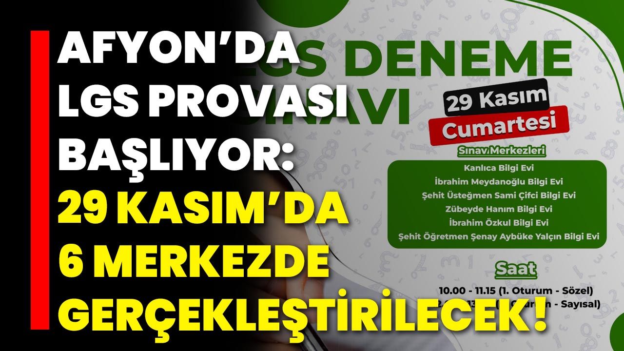 Afyonkarahisar Belediyesi, Liselere Geçiş Sistemi (LGS) sınavına hazırlanan öğrenciler için kapsamlı bir deneme sınavı programı hazırladı. 29 Kasım Cumartesi günü düzenlenecek sınav, şehir genelindeki Bilgi Evlerinde eş zamanlı olarak gerçekleştirilecek. Öğrenciler, saat 10.00’da başlayacak birinci oturumda sözel, 12.00’de başlayacak ikinci oturumda ise sayısal soruları yanıtlayacak.