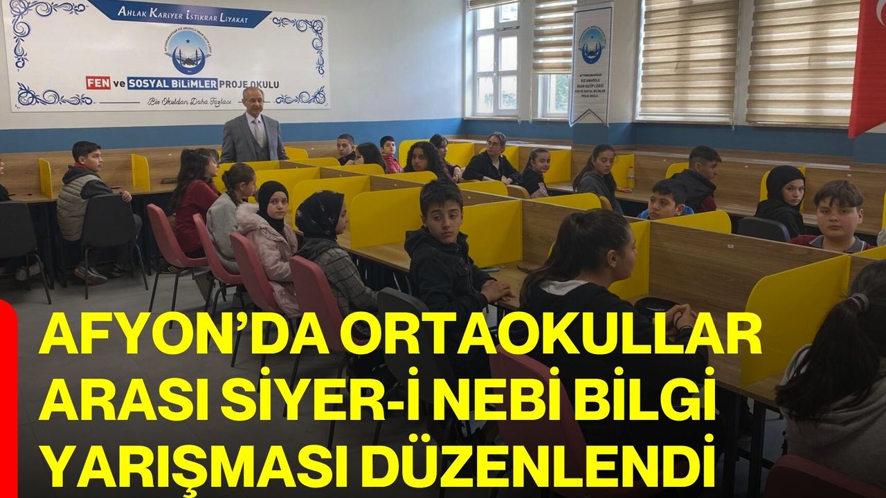 Afyonkarahisar İl Milli Eğitim Müdürlüğü koordinesinde, Yunus Emre Ortaokulu’nun koordinatörlüğünde düzenlenen Ortaokullar Arası Merkez İlçe Siyer-i Nebi Bilgi Yarışması, Afyonkarahisar Proje Kız İmam Hatip Lisesi Konferans Salonu’nda yapıldı.