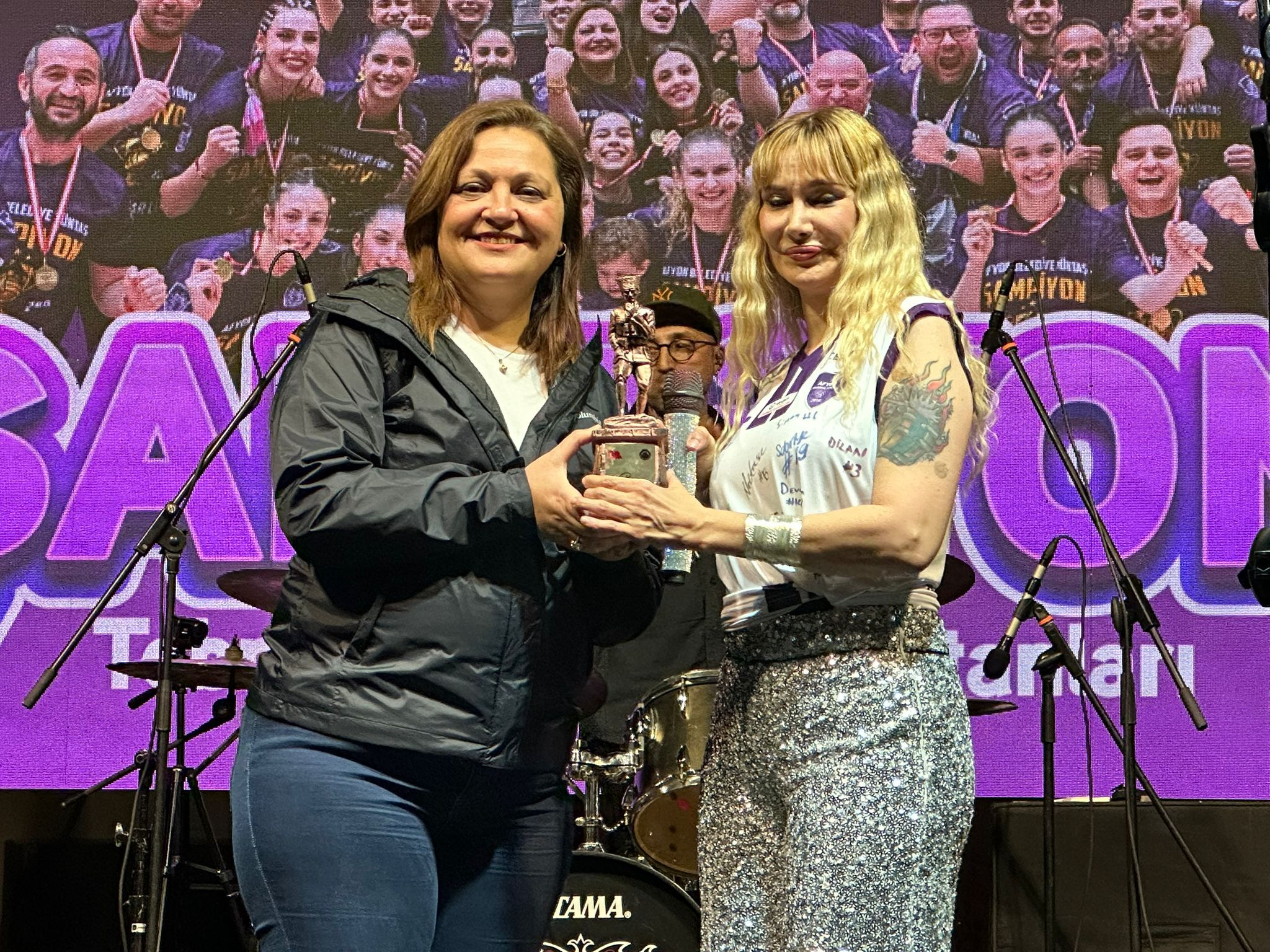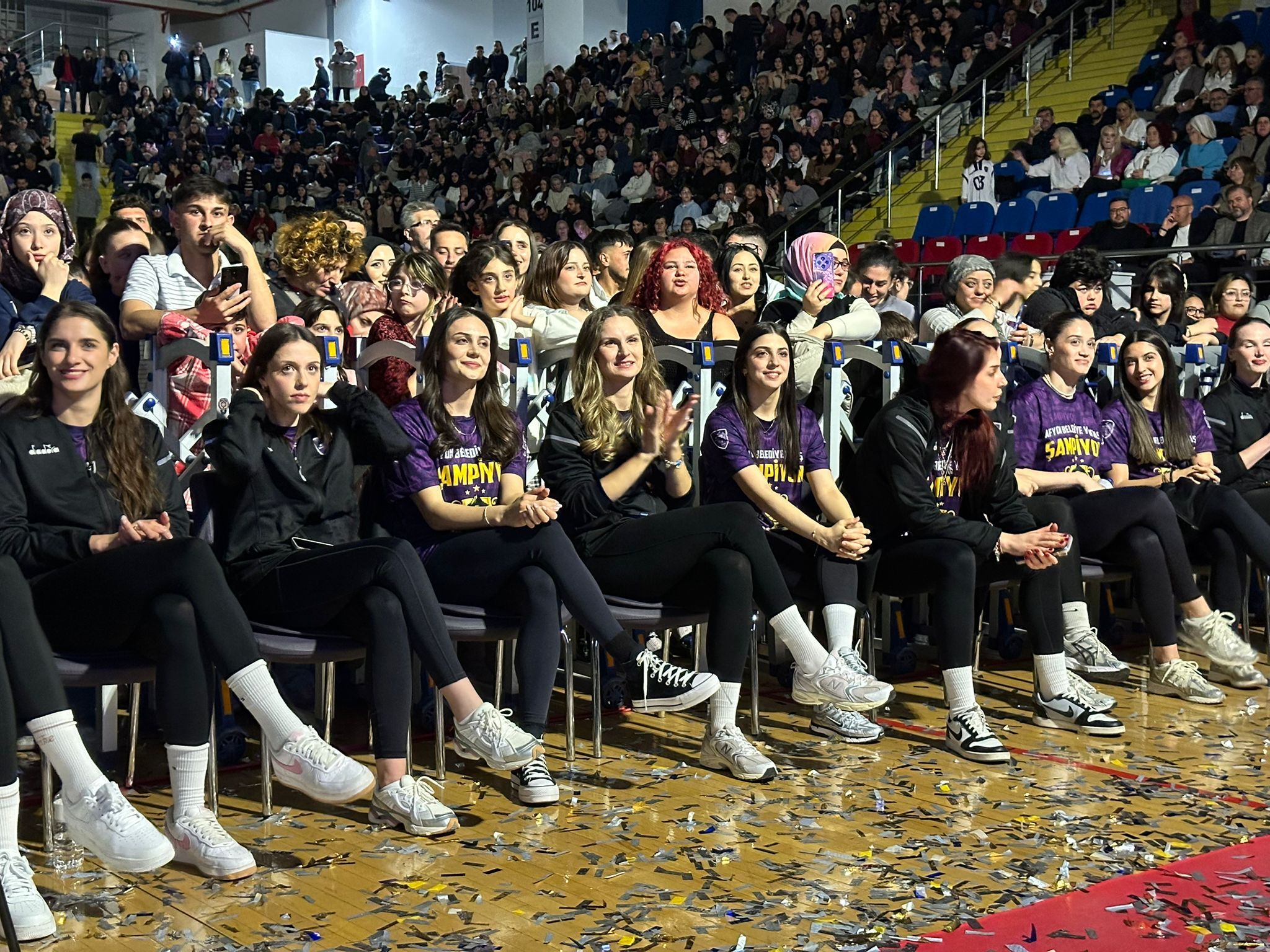 Protokol konuşmalarının ardından gecenin en önemli anı olan kupa seremonisine geçildi. Teknik heyet ve sporcular, şampiyonluk kupasını büyük bir coşkuyla havaya kaldırdı. Konfetiler ve marşlar eşliğinde kutlanan bu anlar, salondaki binlerce taraftarın katılımıyla unutulmaz bir atmosfere dönüştü.