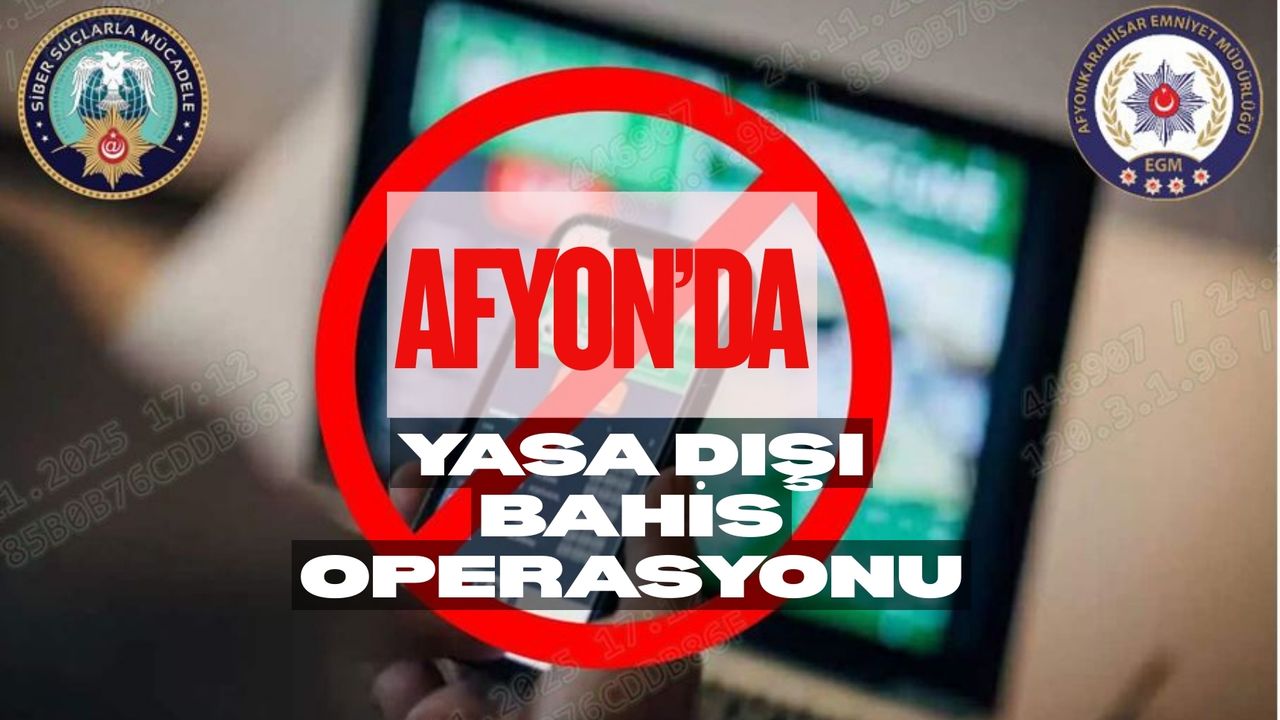 Afyonkarahisar İl Emniyet Müdürlüğü ekipleri, “7258 sayılı Futbol ve Diğer Spor Müsabakalarında Bahis ve Şans Oyunları Düzenlenmesi Hakkında Kanuna Muhalefet” suçu kapsamında yürüttüğü çalışma sonucu yasa dışı bahis operasyonu gerçekleştirdi. Bir bahis sitesi üzerinden yasa dışı bahis ve sanal kumar oynanmasında para transferine aracılık eden hesaplara yönelik yapılan planlı çalışmalar neticesinde, Afyonkarahisar il merkezinde 3 şüpheli hakkında adli işlem uygulandı.