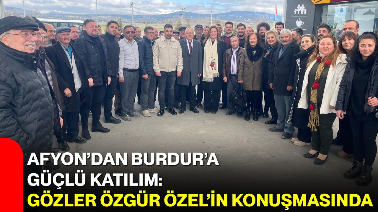 Burdur Cumhuriyet Meydanı’nda düzenlenecek programa Afyonkarahisar Belediye Başkanı Burcu Köksal, CHP Afyonkarahisar İl Başkanı Hasan Karadeniz, CHP Afyonkarahisar Merkez İlçe Başkanı Murat Albayrak ile birlikte il yönetim kurulu üyeleri ve çok sayıda partili yoğun katılım sağladı. Afyonkarahisar teşkilatının programa geniş katılım gösterdiği, partililerin özellikle CHP Genel Başkanı Özgür Özel’in yapacağı konuşmayı yakından takip etmek üzere miting alanında yer aldığı ifade edildi. Programda demokrasi, millet iradesi ve siyasi gündeme ilişkin mesajların öne çıkmasının beklendiği belirtildi.