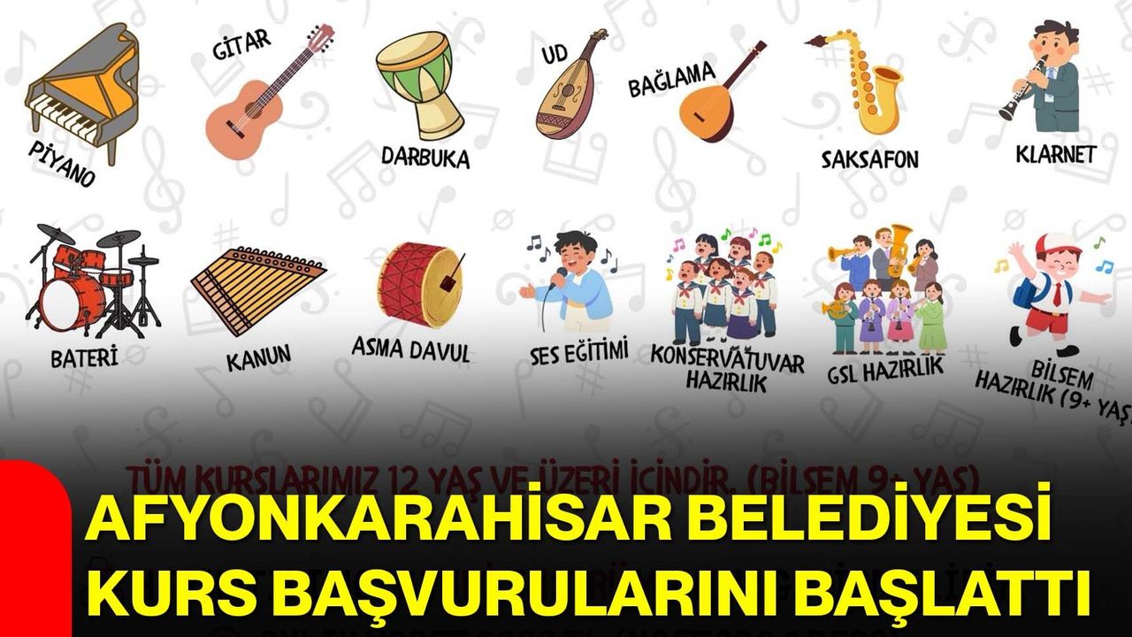 Afyonkarahisar Belediyesi, müziğe ilgi duyan vatandaşlara yönelik enstrüman kurslarının başlayacağını açıkladı. Belediye Şehir Tiyatrosu bünyesinde gerçekleştirilecek kurslar için başvuruların alındığı belirtilirken, farklı enstrüman ve eğitim programlarının yer aldığı ifade edildi.