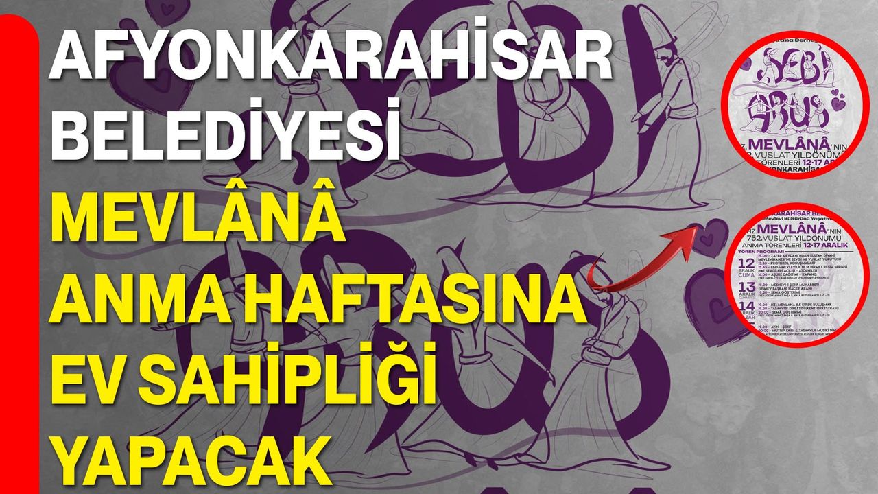 Afyonkarahisar Belediyesi ve Uluslararası Mevlevî Kültürünü Yaşatma Derneği tarafından organize edilen Hz. Mevlânâ’nın 752. Vuslat Yıldönümü Anma Programı, 12–17 Aralık tarihleri arasında kentte çeşitli kültürel ve tasavvufi etkinliklerle gerçekleştirilecek. Program, yürüyüşlerden sema gösterilerine, şiir buluşmalarından tasavvuf konserlerine kadar pek çok etkinliği kapsayacak.