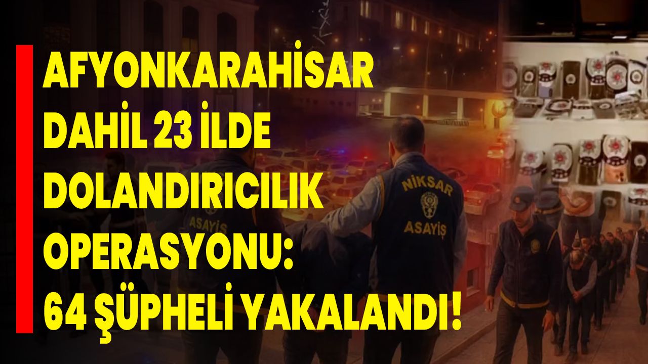 İçişleri Bakanı Ali Yerlikaya, sosyal medya hesabından yaptığı açıklamada, Afyonkarahisar’ın da aralarında bulunduğu 23 ilde “Nitelikli Dolandırıcılık Şebekelerine” yönelik son 10 gündür yürütülen operasyonların başarıyla tamamlandığını açıkladı. Bakan Yerlikaya, 14 vatandaşın mağdur edildiği olaylarda toplam 64 şüphelinin yakalandığını bildirdi.