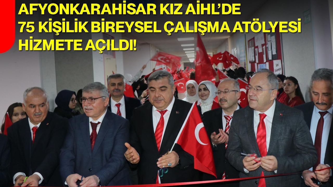 Afyonkarahisar Kız Anadolu İmam Hatip Lisesi (Fen ve Sosyal Bilimler Proje Okulu) bünyesinde, öğrencilerin eğitim faaliyetlerini modern ve ferah bir ortamda sürdürebilmeleri amacıyla hazırlanan 75 Kişilik Bireysel Çalışma Atölyesi’nin açılışı gerçekleştirildi. Açılış kurdelesi; İl Milli Eğitim Müdürü Miraç Sünnetci, Eğitim Müfettişleri Başkanı Yusuf Turhan, müdür yardımcıları, şube müdürleri, okul idarecileri, öğretmenler ve öğrencilerin katılımıyla kesildi.