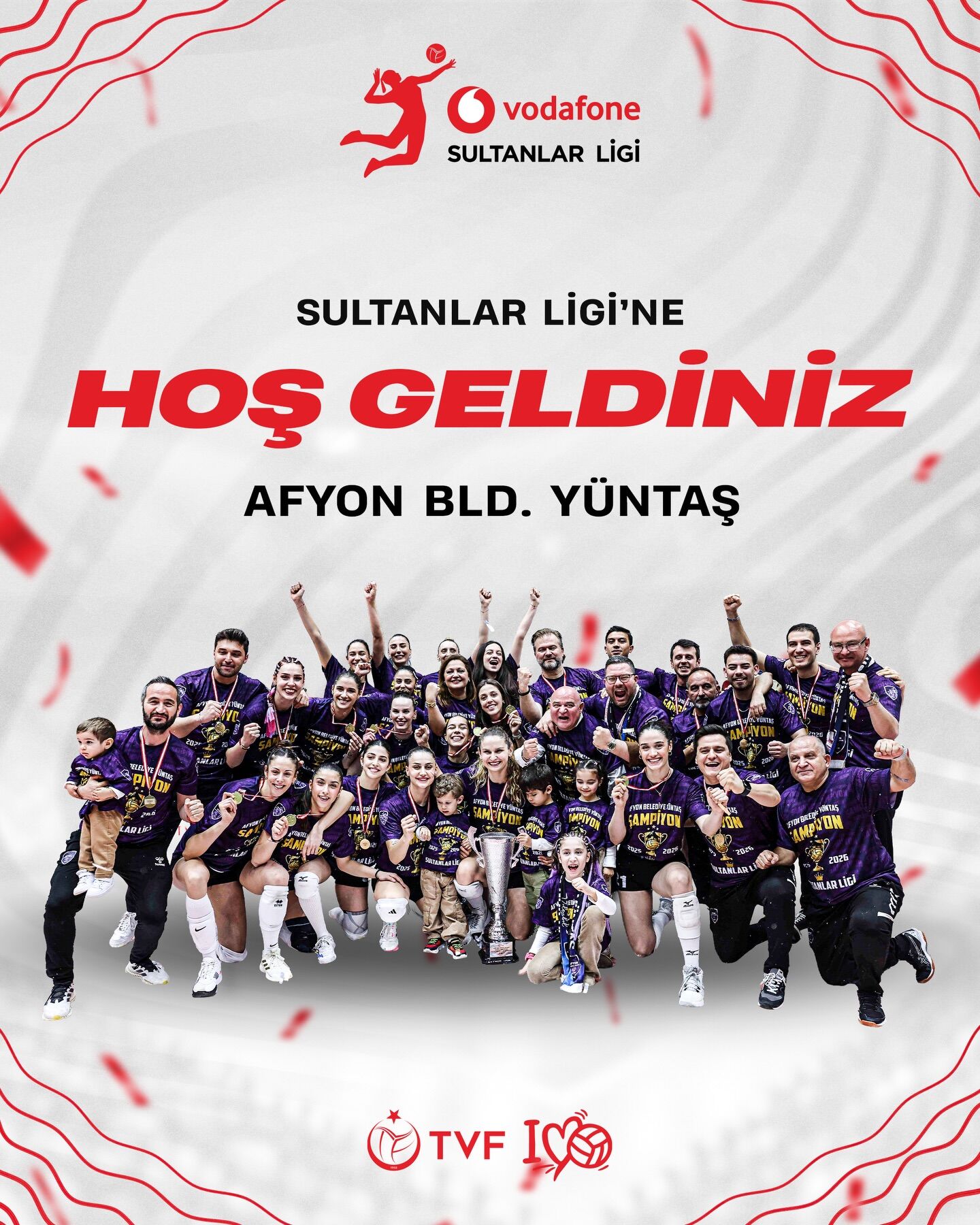 Afyon Belediye Yüntaş Kadın Voleybol Takımı, Arabica Coffee House Kadınlar 1. Ligi’ni şampiyon tamamlayarak Sultanlar Ligi’ne yükselip şehir spor tarihine unutulmaz bir başarı kazandırdı. Büyük zaferin ardından Türkiye Voleybol Federasyonu da sosyal medya hesabından yaptığı paylaşımda, “Vodafone Sultanlar Ligi’ne hoş geldiniz Afyon Bld. Yüntaş!” ifadeleriyle takımı tebrik ederek yeni sezonda Sultanlar Ligi’nde mücadele edeceklerini duyurdu.