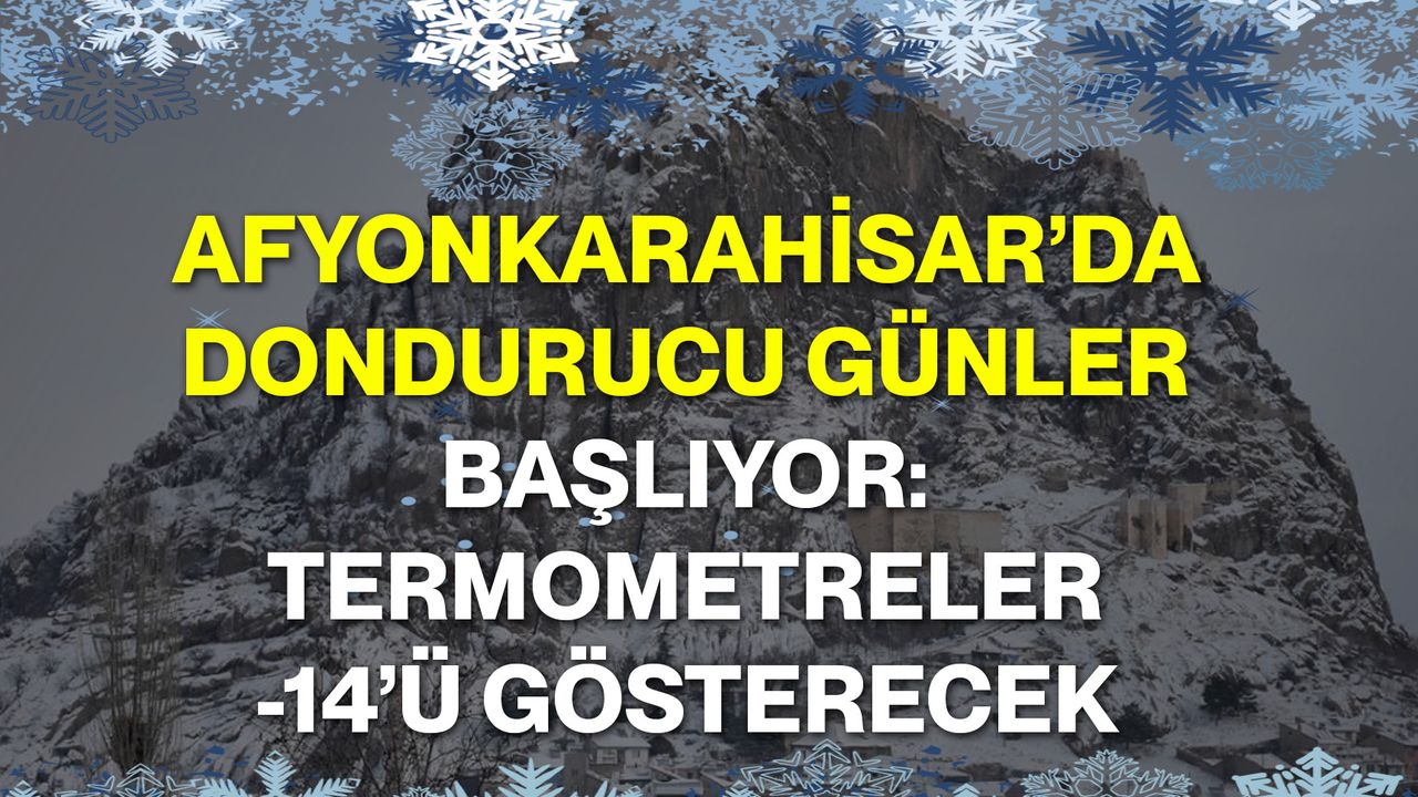 Afyonkarahisar Meteoroloji Müdürlüğünden edinilen bilgilere göre kentte 31 Aralık ile 4 Ocak tarihleri arasında kış koşulları sertleşecek. Yılın son gününde ve yeni yılın ilk günlerinde kar yağışı beklenirken, hafta ortasından itibaren hava sıcaklıklarının eksi 14 dereceye kadar düşmesi öngörülüyor. Yetkililer, buzlanma, don ve sis riskine karşı vatandaşların tedbirli olması gerektiğini bildirdi.