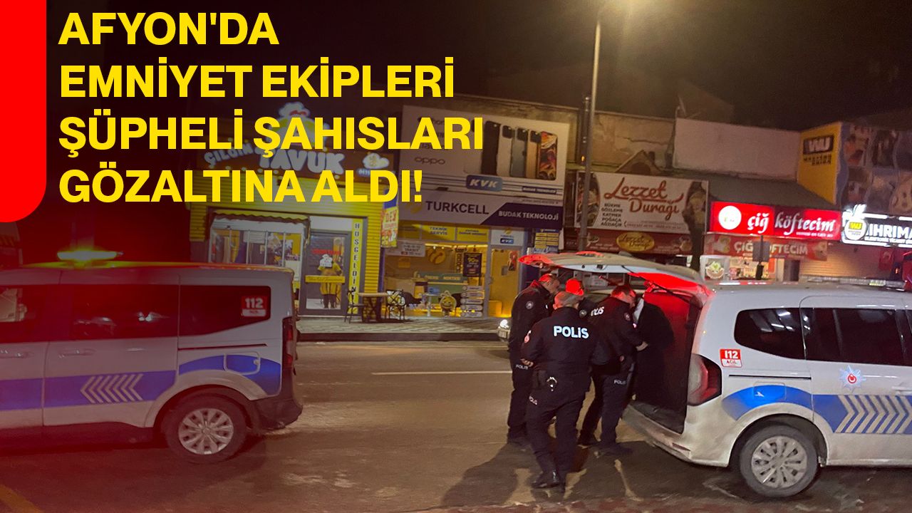 Kent genelinde huzur ve güvenliğin sağlanmasına yönelik sürdürülen çalışmalar çerçevesinde, ekiplerin dikkatini çeken şahıslar durdurularak kimlik kontrolünden geçirildi. Yapılan ilk inceleme ve kontrollerin ardından şüpheli şahısların sorguları gerçekleştirildi. Emniyet ekipleri, gerekli güvenlik önlemlerini aldıktan sonra şahısları ekip otosuna bindirerek Afyonkarahisar İl Emniyet Müdürlüğü’ne götürdü.