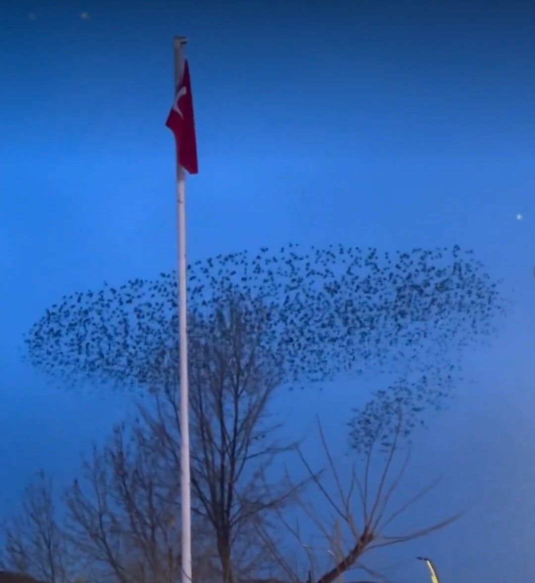 Emirdağ ilçesinde yaşanan doğa olayında, gün batımında bir anda ortaya çıkan yüzlerce kuşun sürü halinde dans edercesine uçtuğu anlar görenleri hayran bıraktı. Kuş sürüsünün uçtuğu bölgede Türk bayrağının da olması ortaya eşsiz görüntüler çıkardı. Telefonu ile o anları kayıt altına alan AK Parti Afyonkarahisar Milletvekili İbrahim Yurduseven, videoyu sosyal medya hesabından özgürlük vurgusunda bulunarak, "Emirdağ ilçemizdeki bayramlaşmaya tıpkı ülkemiz gibi ay yıldızlı bayrağımızın etrafında özgürce süzülen kuşlarla karşılandık. Gurbetin şehri Emirdağ semalarında gurbet kuşları diyelim biz bunlara" ifadeleri ile paylaştı. Paylaşılan görüntü özellikle sosyal medya kullanıcıları tarafından büyük ilgi gördü.