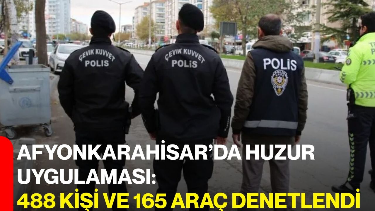 Afyonkarahisar İl Emniyet Müdürlüğü ekiplerince suç ve suçluyla mücadele kapsamında il merkezinde kapsamlı bir huzur uygulaması gerçekleştirildi. Vatandaşların huzur ve güvenliğinin sağlanması amacıyla yapılan denetimlerde çok sayıda kişi ve araç kontrol edilerek çeşitli işlemler uygulandı.