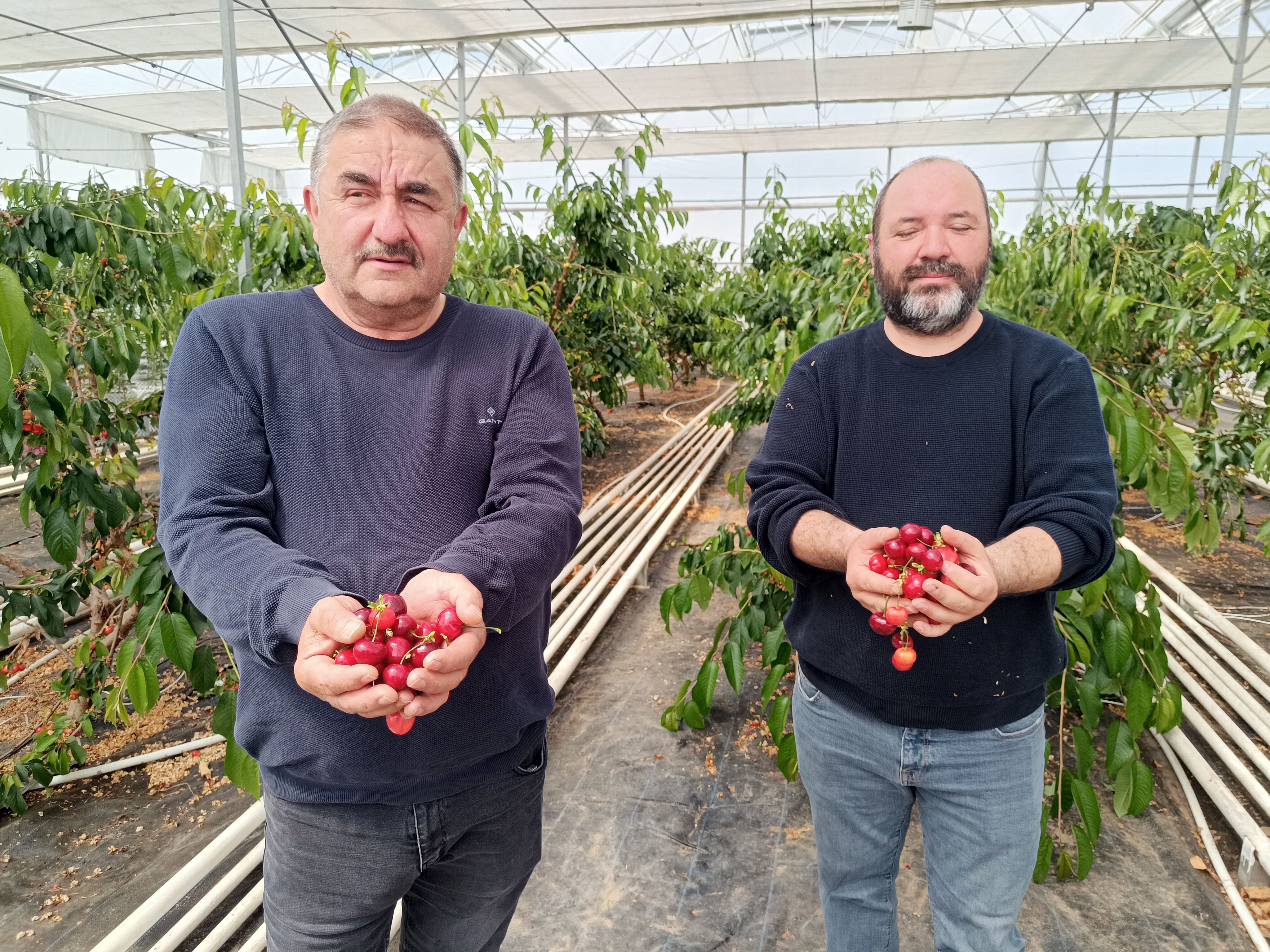 Domatesin yanına alternatif ürün olarak kiraz üretimine yöneldiklerini anlatan Mutlu, "Bu mevsimde kiraz yetiştirmek zor bir iş ama bunu başardık. Hasat ettiğimiz ilk ürünleri iç piyasaya sunacağız." dedi. Proje ortaklarından İlker İrge de jeotermal serada hem yerli hem de ithal kiraz fidanları üzerinde deneme yaptıklarını dile getirdi.