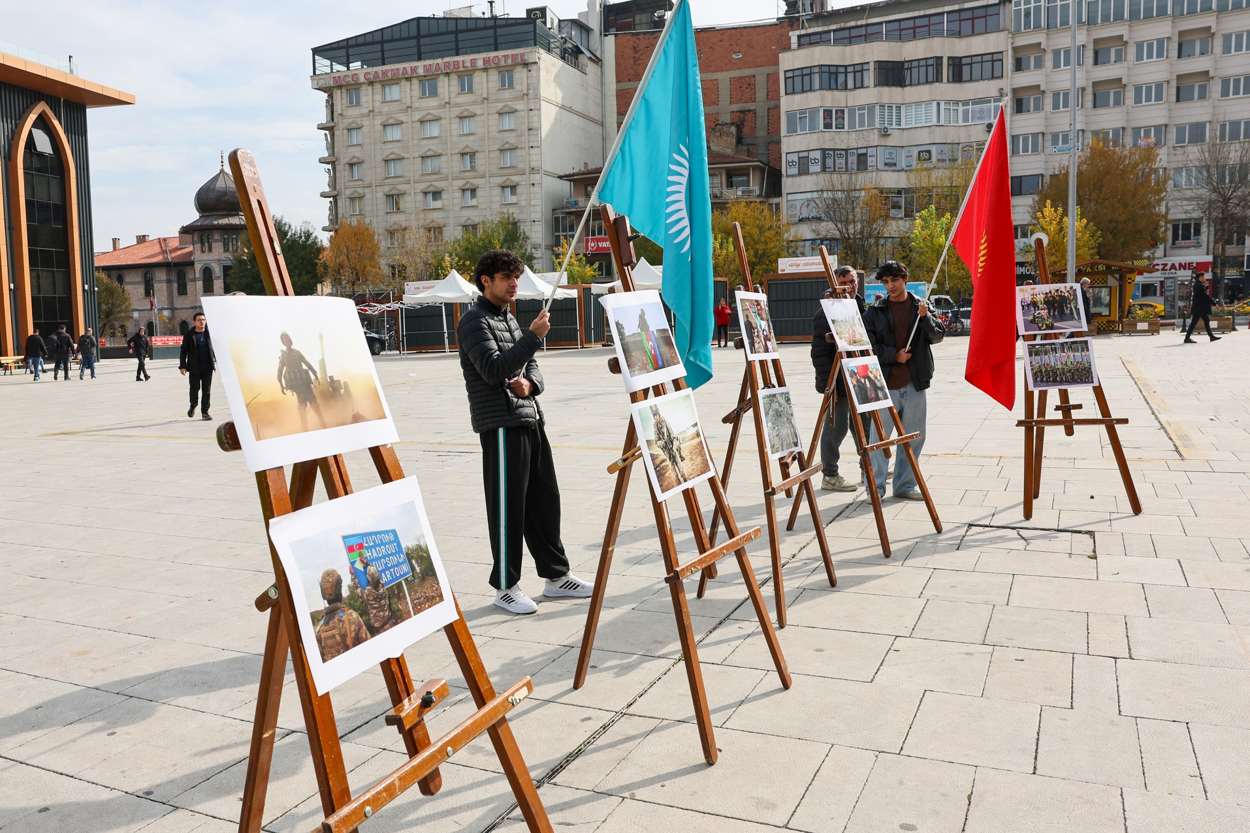 Afyon Azerbaycanlılar Derneği tarafından Zafer Meydanı'nda açılan sergide, Azerbaycan ile Ermenistan arasındaki Karabağ Muharebelerinde yer alan fotoğraflar yer aldı.