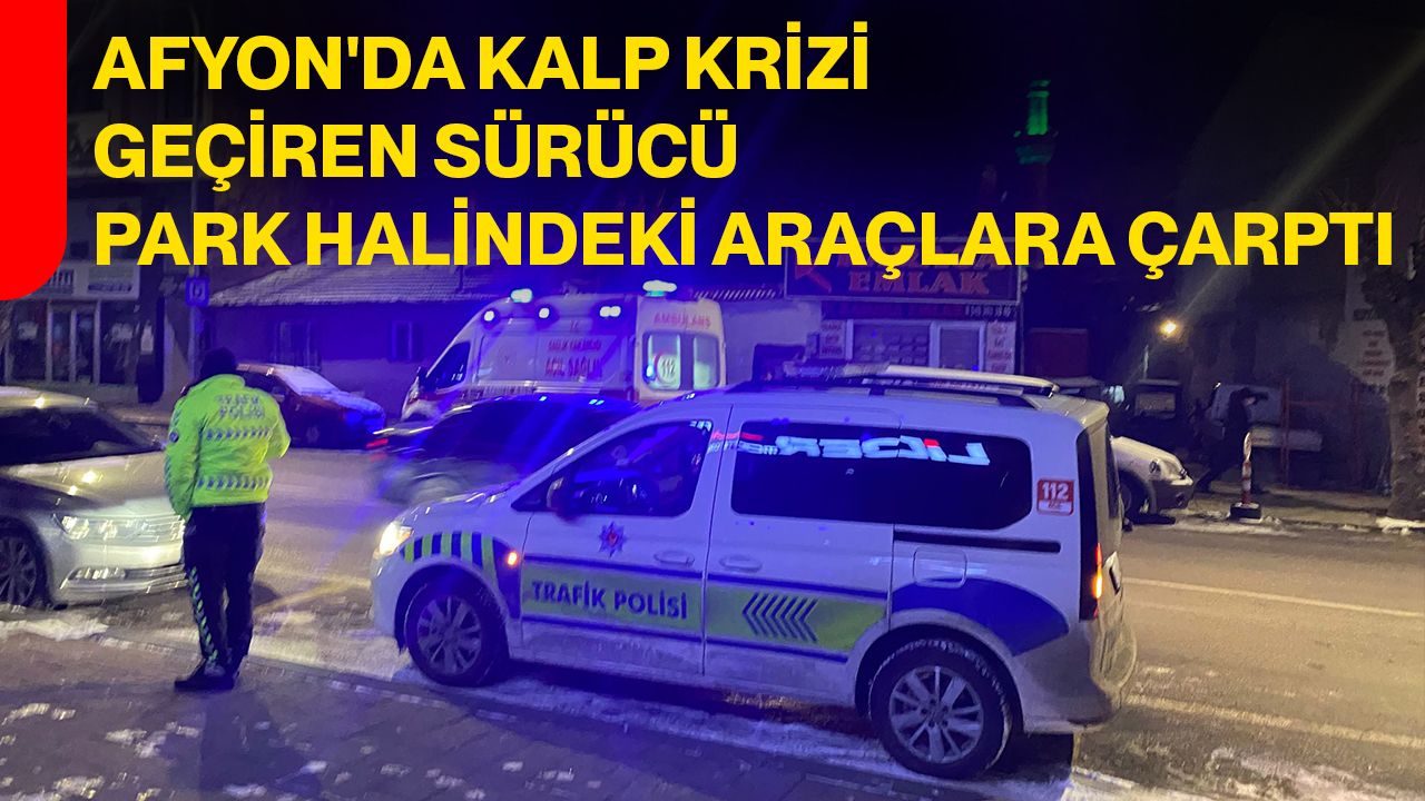 Afyonkarahisar Gazligöl Caddesi üzerinde meydana gelen kazada, A.K. isimli bir vatandaş direksiyon başında kalp krizi geçirerek kontrolü kaybetti. Park halindeki araçlara çarpan sürücü, çevredeki vatandaşların ihbarı üzerine olay yerine gelen sağlık ekipleri tarafından hastaneye kaldırıldı.