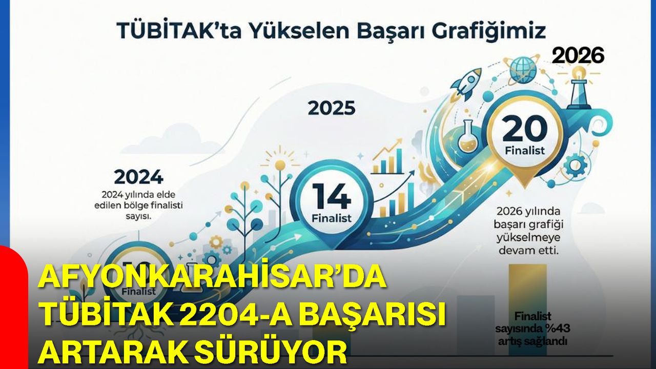 Afyonkarahisar İl Milli Eğitim Müdürlüğü koordinasyonunda yürütülen çalışmalar kapsamında, TÜBİTAK 2204-A Lise Öğrencileri Araştırma Projeleri Yarışması’nda Afyonkarahisar’ın bölge finaline kalan proje sayısında dikkat çekici bir artış yaşandı. 2026 yılı itibarıyla 20 projenin bölge finaline kalmasıyla birlikte, il genelinde bilimsel araştırma ve proje temelli eğitim anlayışının güçlenerek sürdüğü kaydedildi.