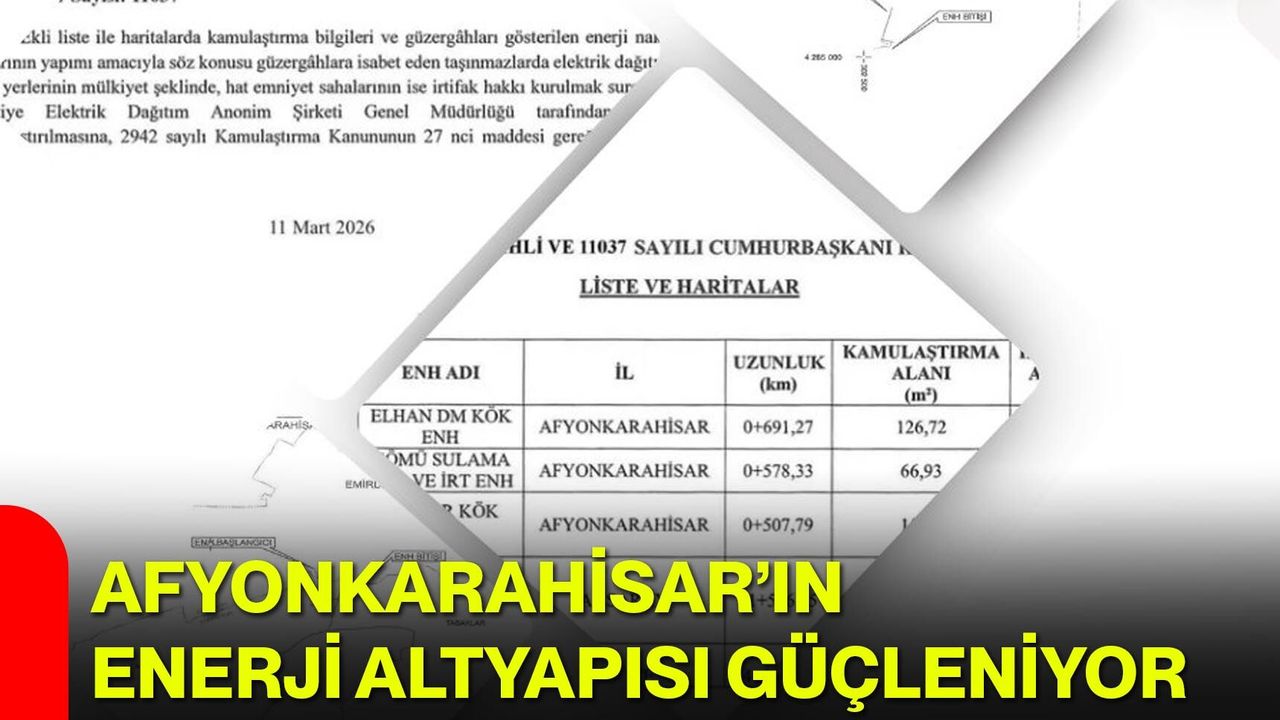 Yayımlanan karar doğrultusunda Elhan DM KÖK ENH, Gömü Sulama KÖK–İRT ENH ve Işıklar KÖK ENH enerji nakil hatlarının yapımı için gerekli kamulaştırma süreci başlatıldı. Projenin tamamlanmasıyla birlikte Afyonkarahisar’da enerji arz güvenliğinin artırılması, özellikle tarımsal sulama ve üretim alanlarında enerji ihtiyacının daha güçlü şekilde karşılanması amaçlanıyor.