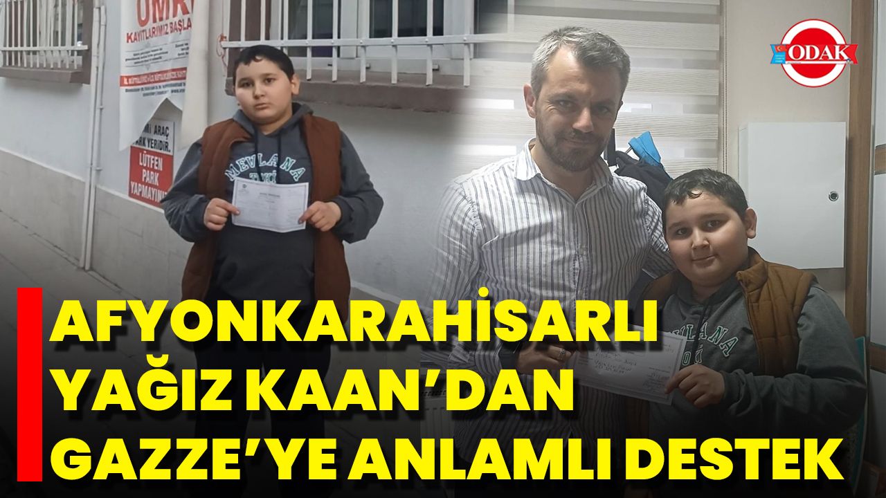 Elde ettiği ödülün bir kısmını Filistin’deki mazlumlara destek olmak amacıyla Türkiye Diyanet Vakfı Afyonkarahisar Şubesi aracılığıyla bağışlayan Yağız Kaan, duyarlılığıyla gönülleri kazandı.