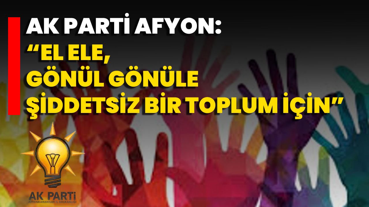 AK Parti Afyonkarahisar teşkilatı, şiddetin her türlüsüne karşı olduklarını belirterek, toplumsal dayanışma ve hoşgörü kültürünün yaygınlaşması için tüm kesimlere çağrıda bulundu.