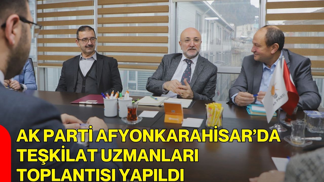 AK Parti Afyonkarahisar İl Başkanı Av. Turgay Şahin’in riyasetinde Teşkilat Uzmanları Toplantısı düzenlendi. Toplantıya, AK Parti Teşkilat Başkanlığı temsilcilerinin de eşlik ettiği bildirildi.