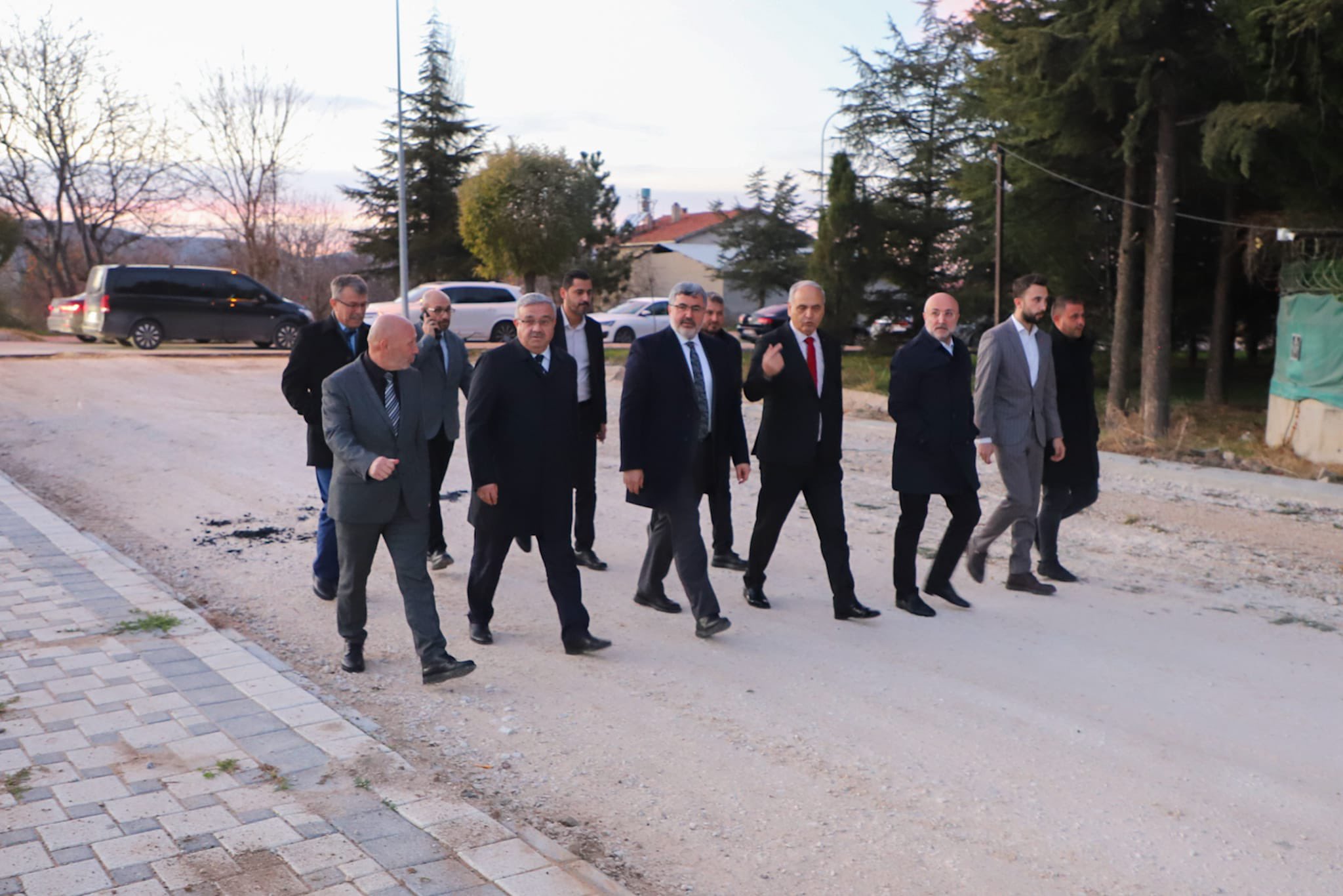 Heyet, bölgedeki yol geliştirme çalışmalarının merkezini oluşturan laboratuvarı ziyaret ederek teknik süreçler, mevcut projeler ve beldede devam eden altyapı çalışmaları hakkında bilgi aldı.