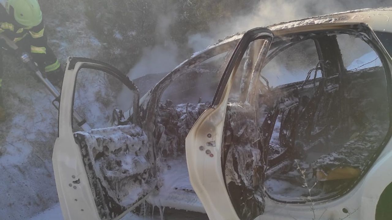 İhbar üzerine olay yerine jandarma, ambulans ve itfaiye sevk edildi. Hafif yaralanan sürücü sağlık ekiplerine hastaneye kaldırılırken, itfaiye ise araçta çıkan yangını söndürdü. Tamamen yanan otomobilin kullanılamaz hale geldiği yangınla ilgili soruşturma başlatıldı İHA