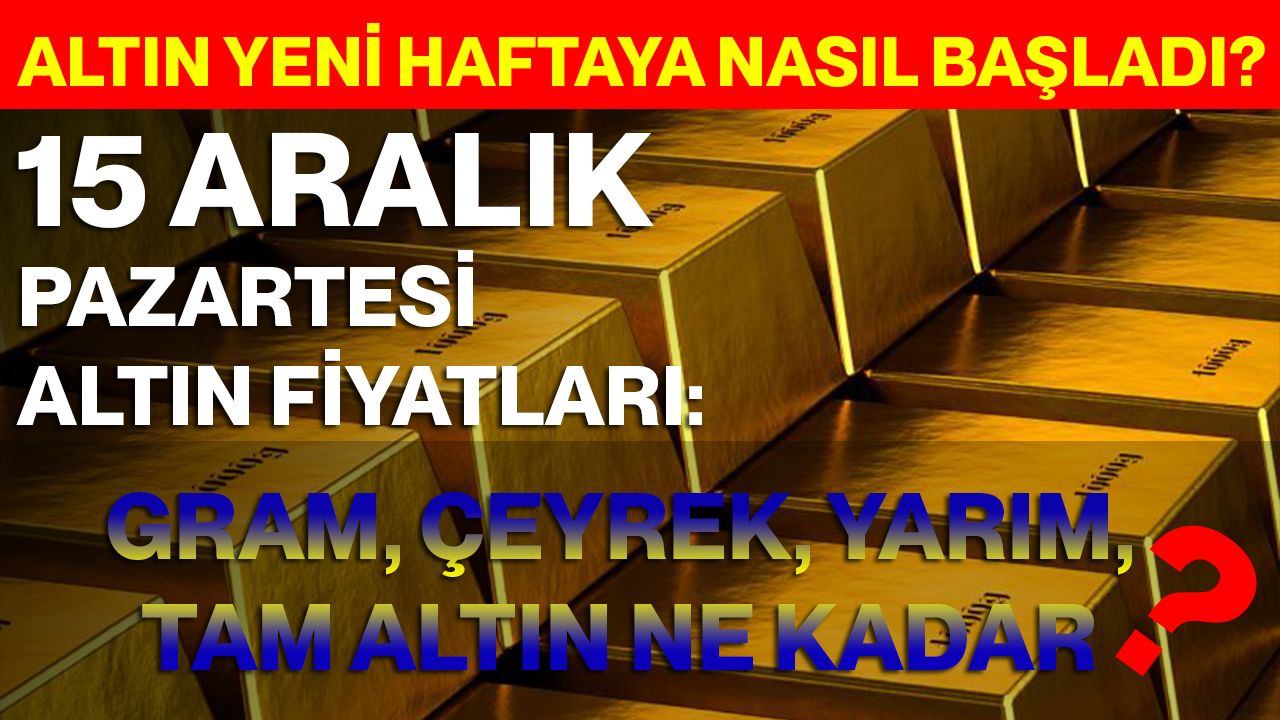 Altın yatırımcıları yeni haftaya dikkatle başlıyor. 15 Aralık 2025 Pazartesi günü gram, çeyrek, yarım ve tam altın fiyatları, günün ilk saatlerinden itibaren vatandaşların en çok merak ettiği konular arasında yer aldı. Peki, altın yeni haftaya nasıl başladı? 15 Aralık Pazartesi gram, çeyrek, yarım, tam altın ne kadar? 15 Aralık 2025 canlı altın fiyatları haberimizde!