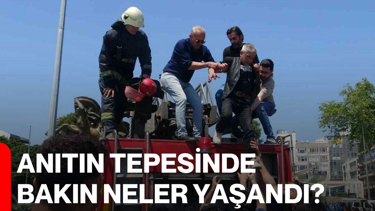 Olay, Deniz Mahallesi Cumhuriyet Caddesi üzerinde bulunan Cumhuriyet Meydanı’nda meydana geldi. Edinilen bilgiye göre, elinde benzin dolu bidon ile Cumhuriyet Meydanı’nda bulunan Ulusal Yükseliş Anıtı’nın üzerine çıkan ve isminin Ertan Ö. olduğu öğrenilen şahsı gören çevredeki vatandaşlar durumu 112 Acil Çağrı Merkezine bildirdi. İhbar üzerine verilen adrese polis, itfaiye ve sağlık ekipleri sevk edildi.