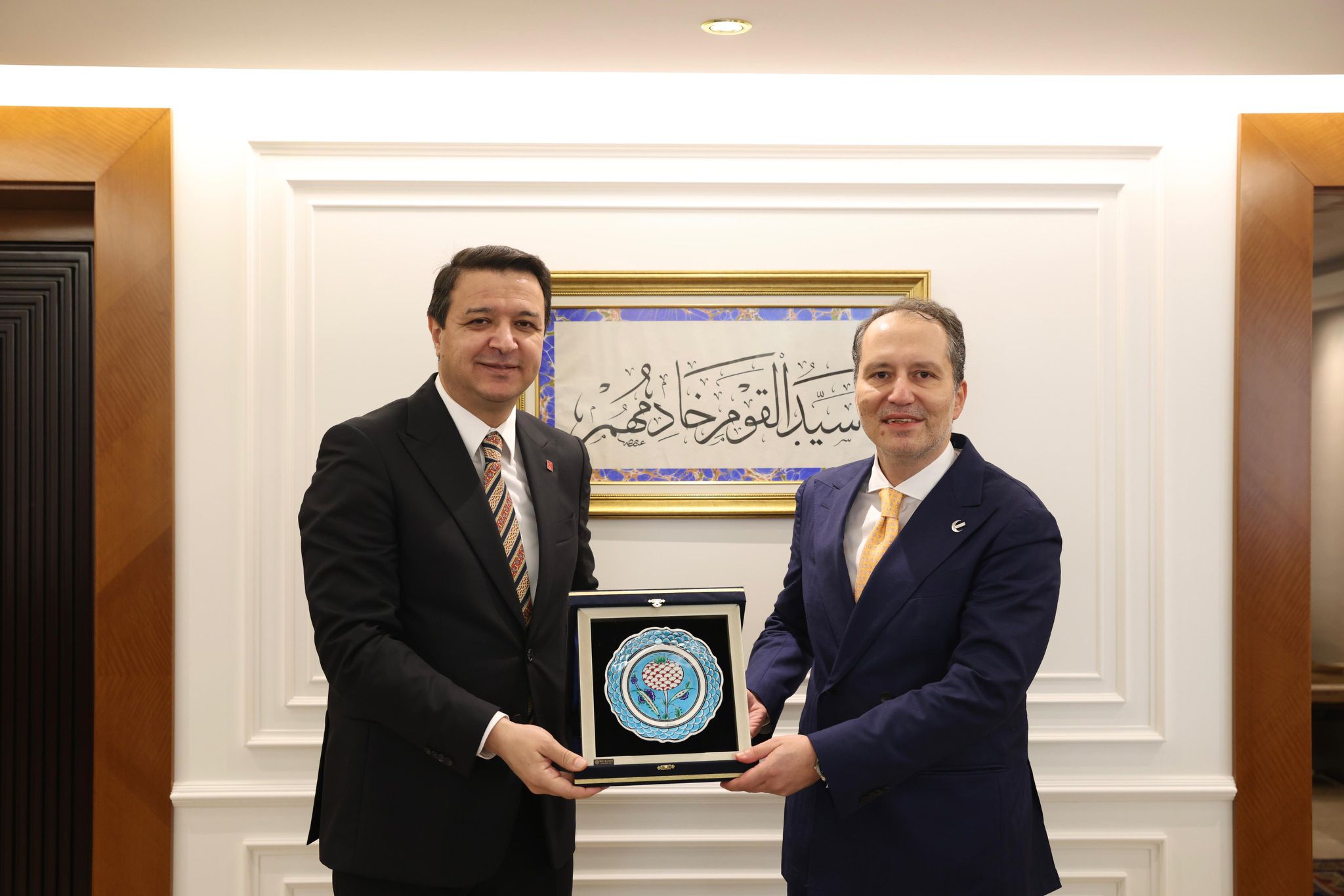 Yeniden Refah Partisi Genel Başkanı Fatih Erbakan, iade-i ziyaretten duyduğu memnuniyeti dile getirdi. Erbakan, “Son derece sıcak ve samimi bir sohbet gerçekleştirdik. Ekonomi, adalet ve Gazze başta olmak üzere dış politikaya ilişkin kapsamlı bir değerlendirme yaptık” dedi. İki parti arasında diyalogun güçlendirileceğini ifade eden Erbakan, “Dış politikadaki problemler ortada. Bunların düzeltilmesi için iktidara alternatif bir güç ortaya koyulması konusunda hemfikir olduk. Saadet ve Yeniden Refah Partisi olarak bundan sonraki süreçte daha sıkı bir birliktelik kararı aldık” açıklamasında bulundu.